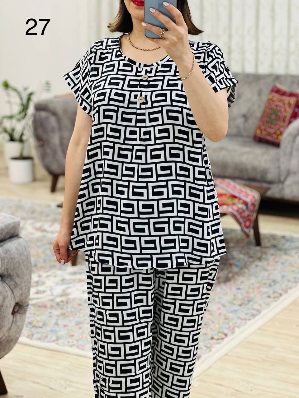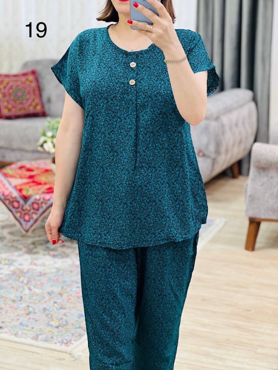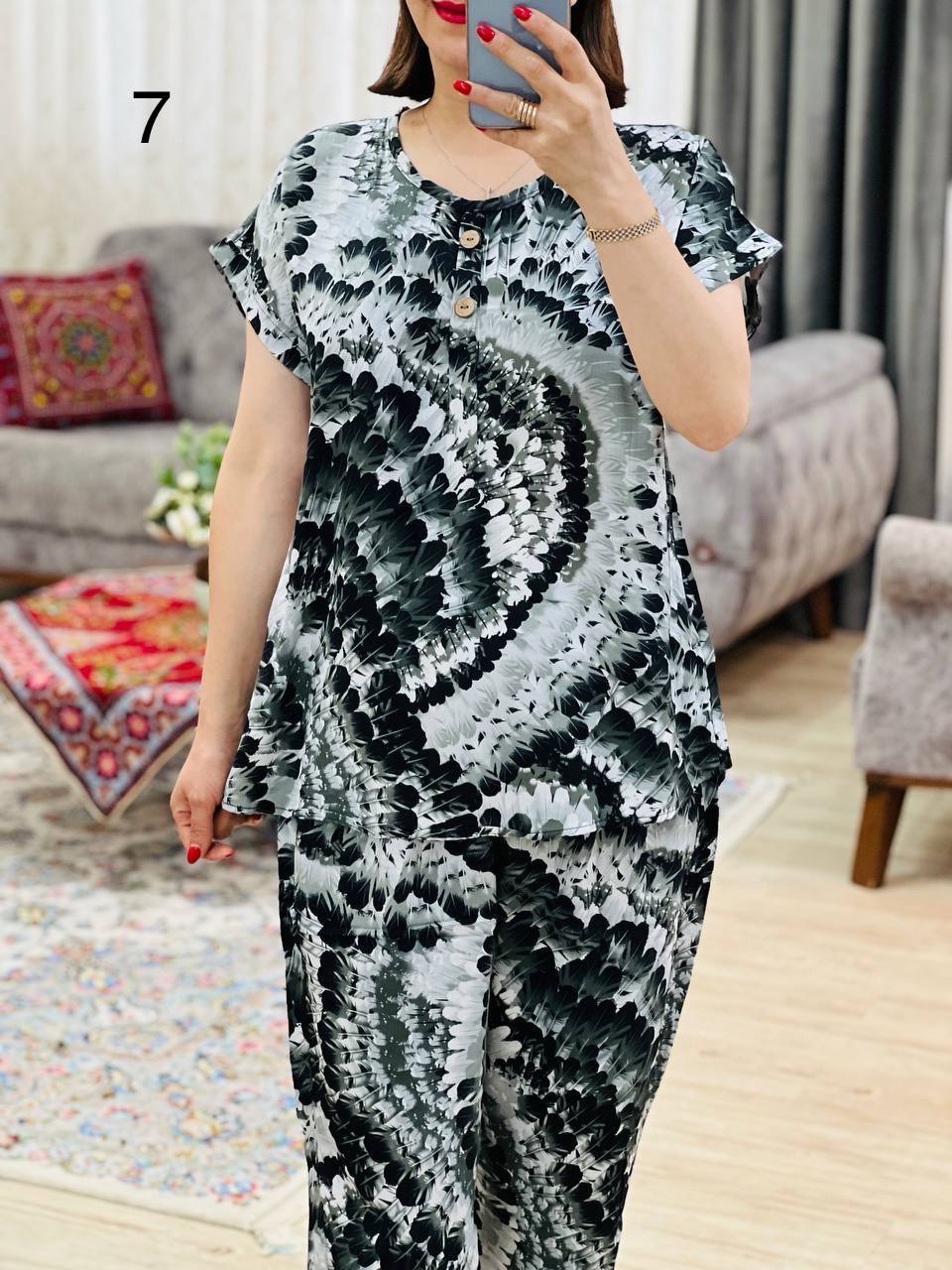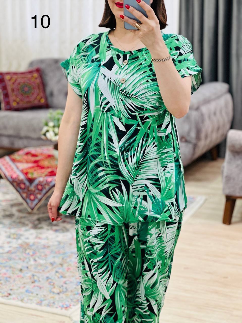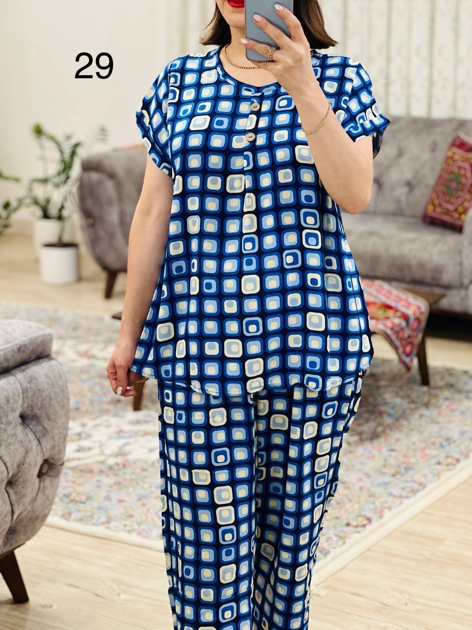 | 2 | مناسب 40 تا 44 / دور سینه 120 / قد تیشرت 70 / قد آستین از یقه 23 / قد شلوار 99 / دور ران 70 |