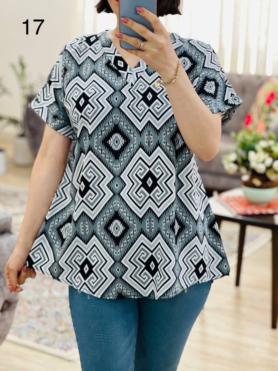 1 مناسب 38 تا 42 / دور سینه 102 / قد جلو 69 / قد پشت 72 / قد آستین از یقه 28 / دور بازو 40