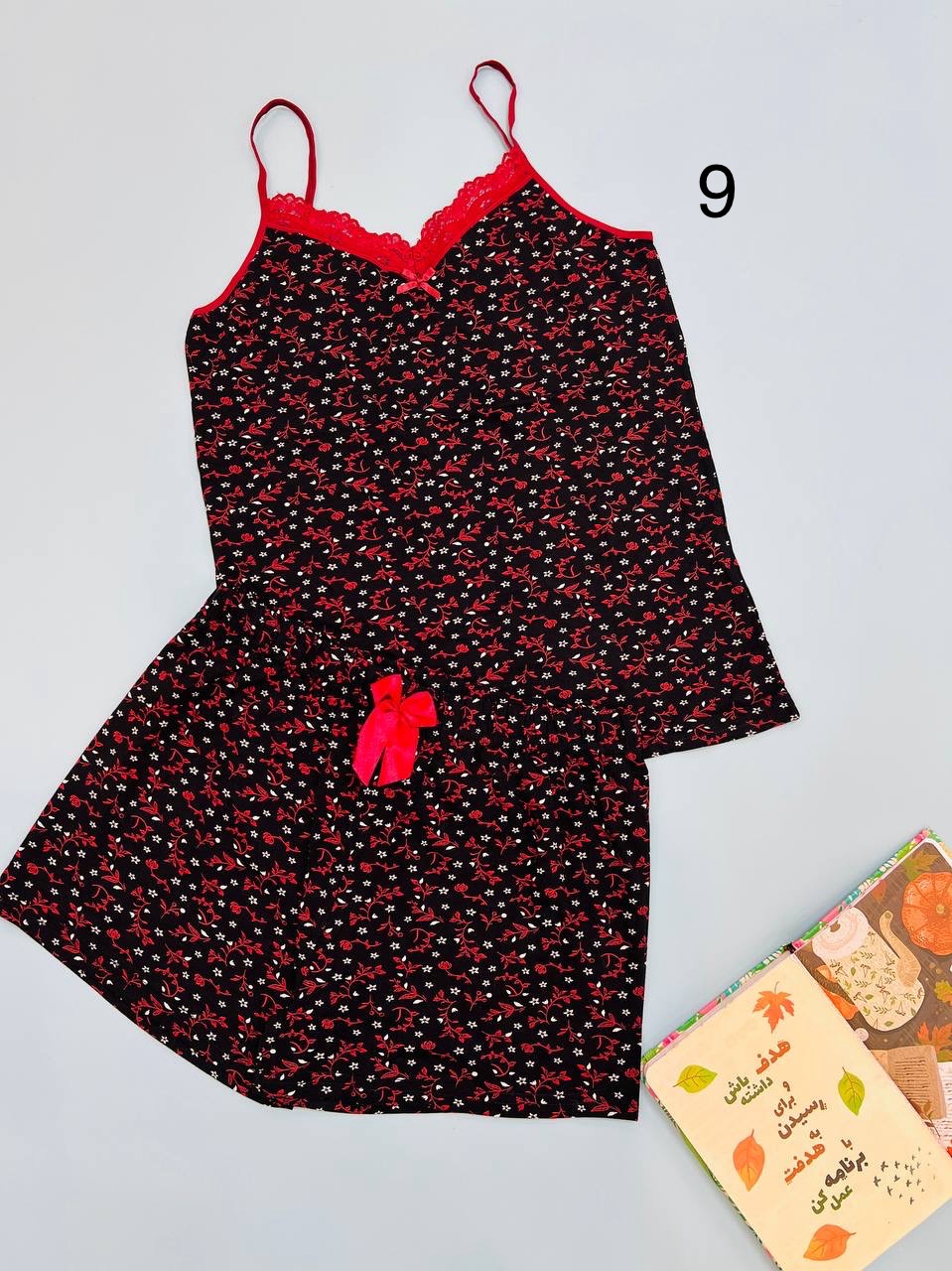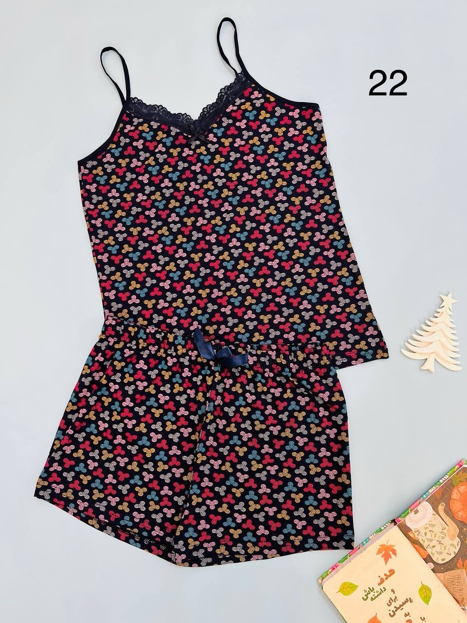 | فری سایز | مناسب 38 تا 46 / دور سینه88 / قد تاپ 65/ قد شورتک33/ دور باسن 102 |