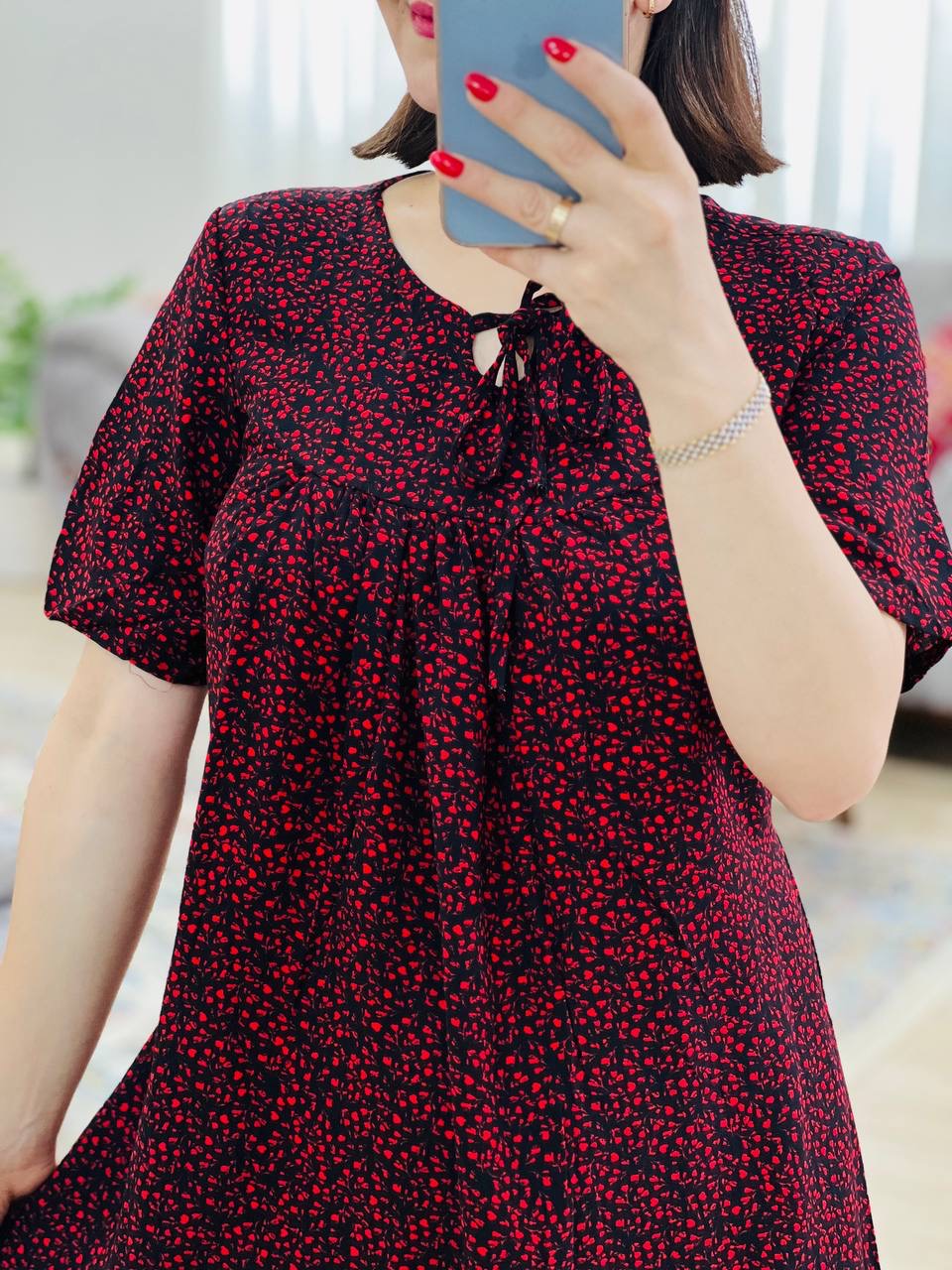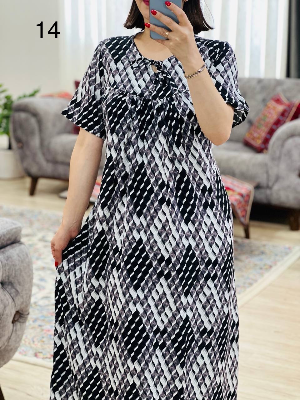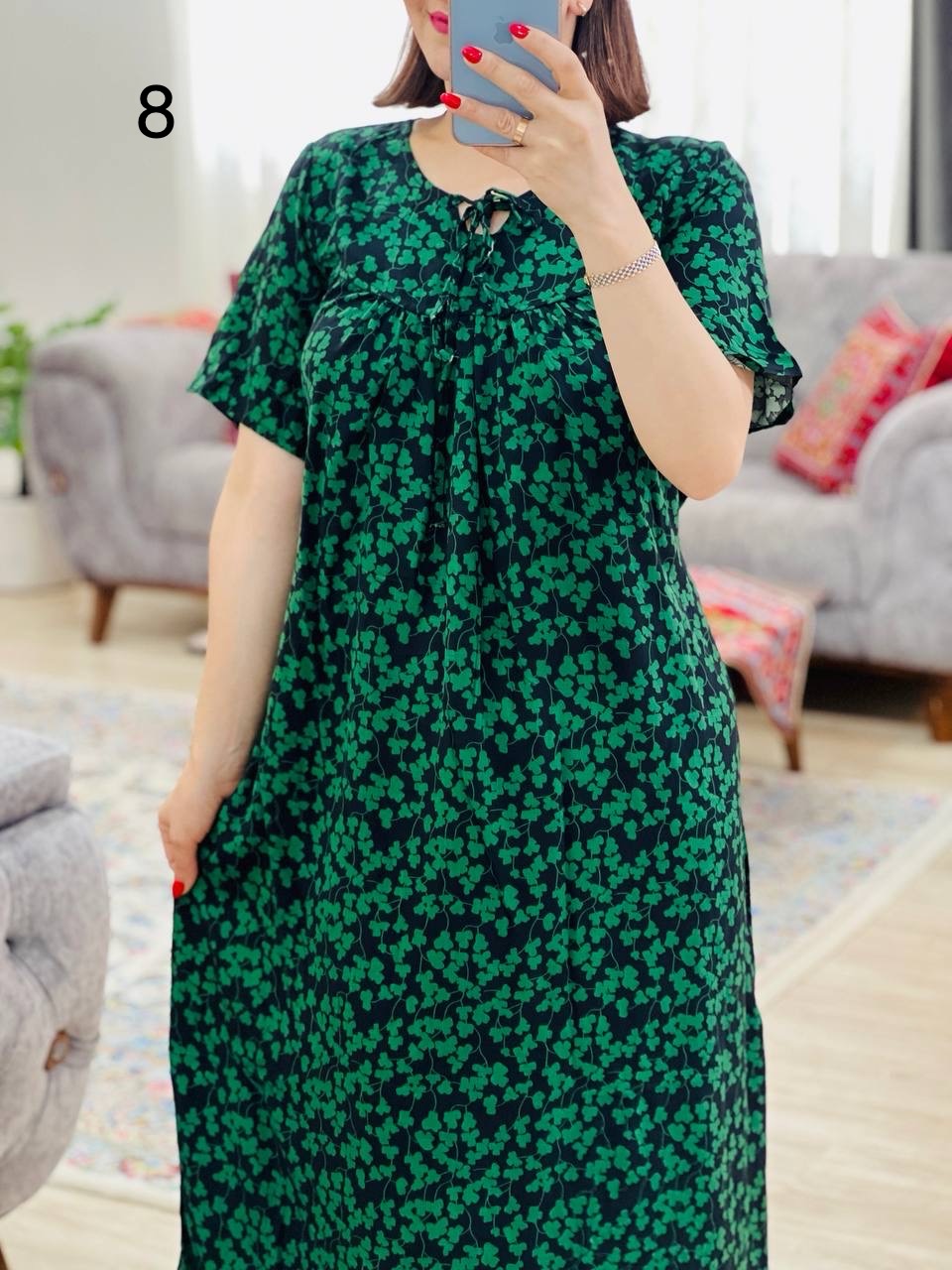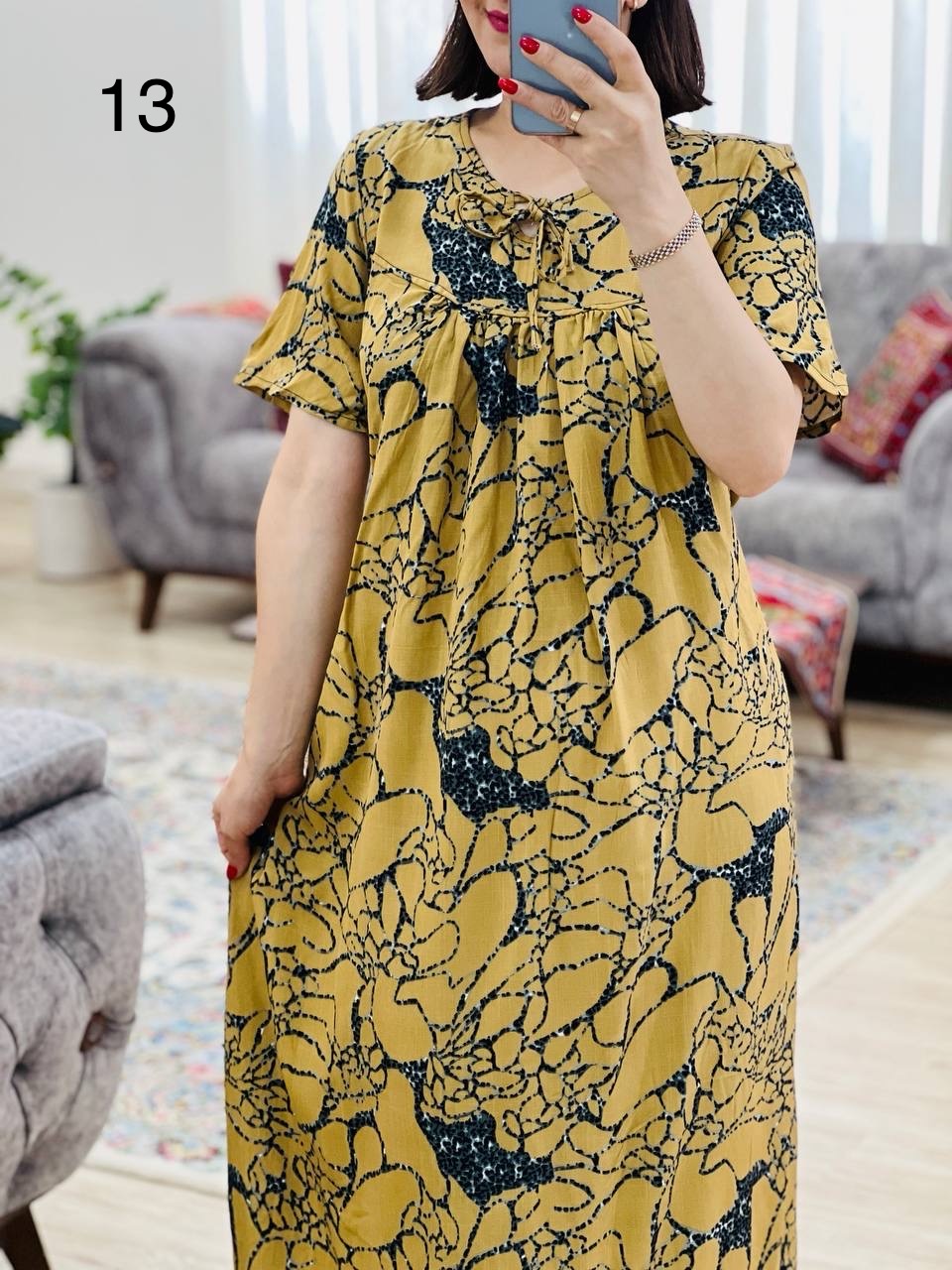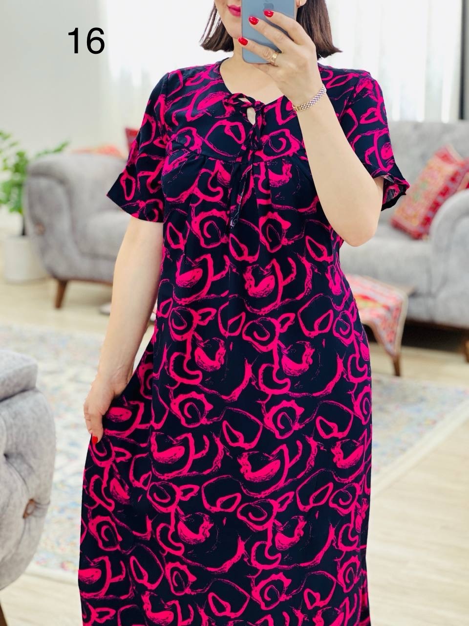 جنس نخ تایلندی / زیر سینه برش دارد / از قد دو سانت آبرفت دارد / از عرض اصلا آبرفت ندارد / دو طرف پیراهن بند دارد / قواره ی هر تولیدی با تولیدی دیگر متفاوت است لطفا حتما سانت در نظر بگیرید
