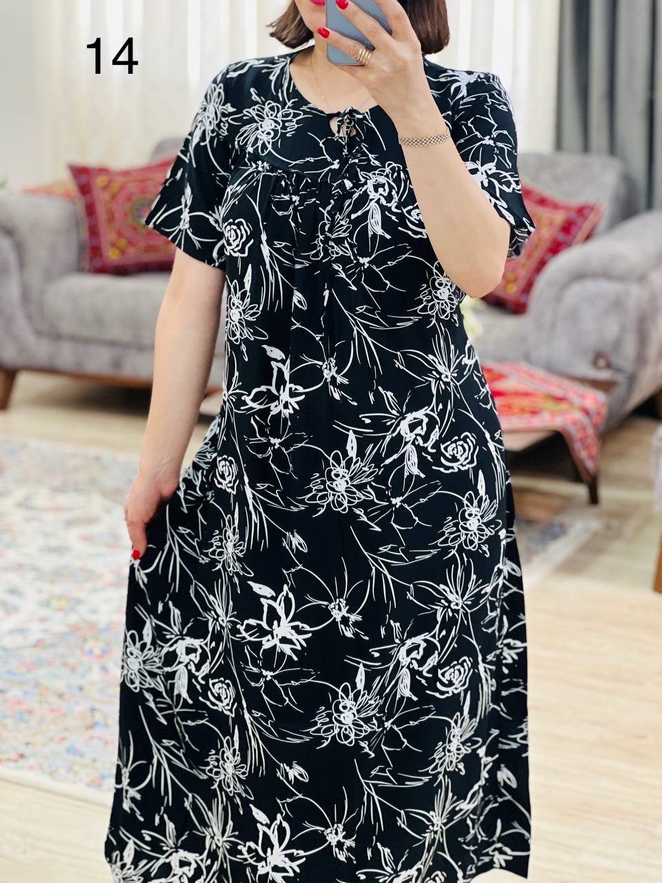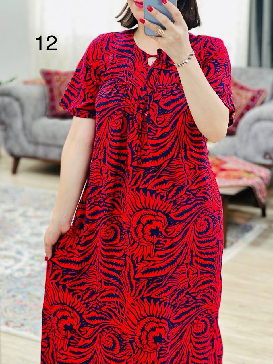 جنس نخ تایلندی / زیر سینه برش دارد / از قد دو سانت آبرفت دارد / از عرض اصلا آبرفت ندارد / دو طرف پیراهن بند دارد / قواره ی هر تولیدی با تولیدی دیگر متفاوت است لطفا حتما سانت در نظر بگیرید.