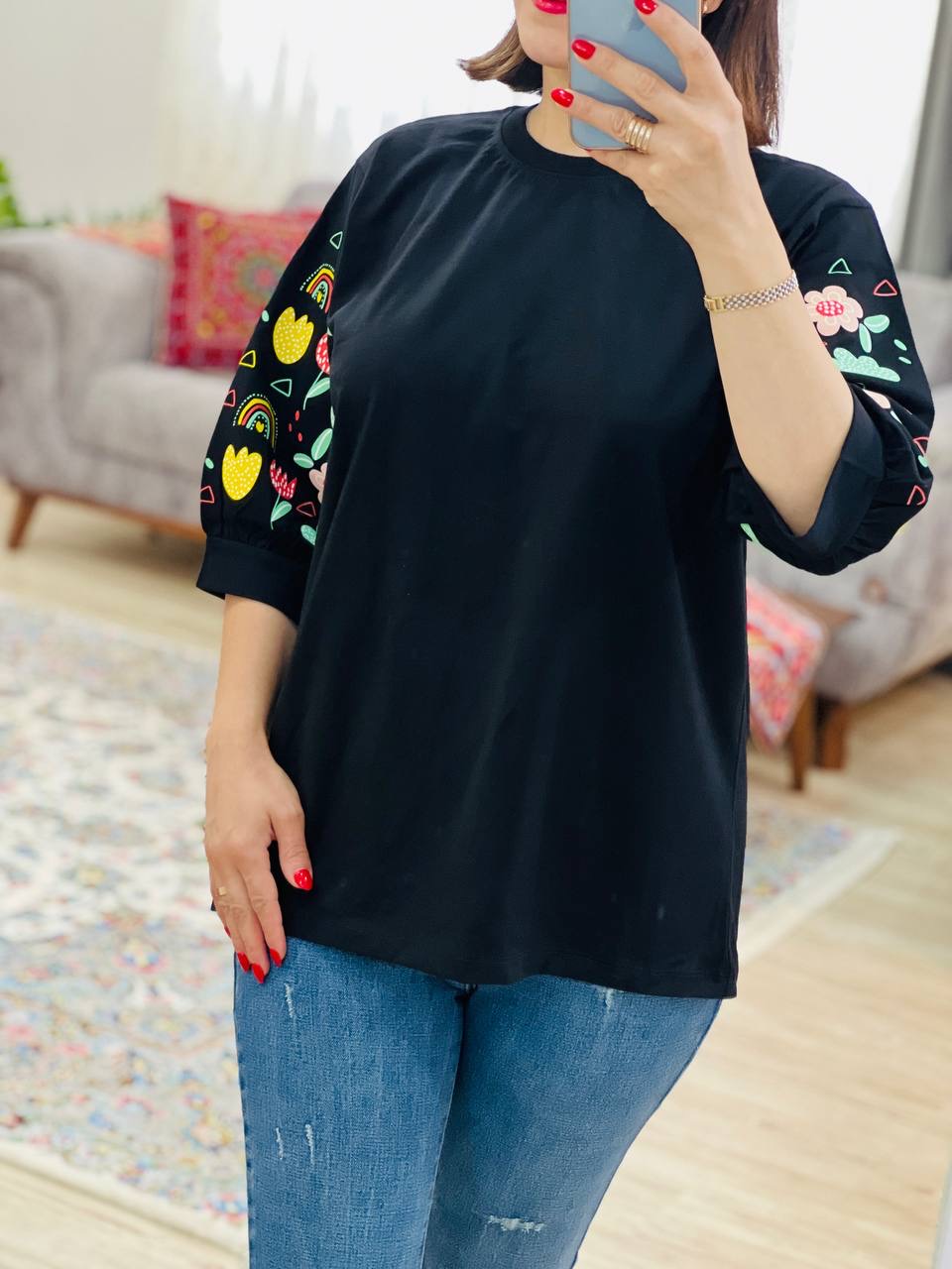 مناسب 38 تا 44 / دور سینه 108 / قد تونیک 66 / قد آستین 34 / سرشانه 15 / دور بازو 50