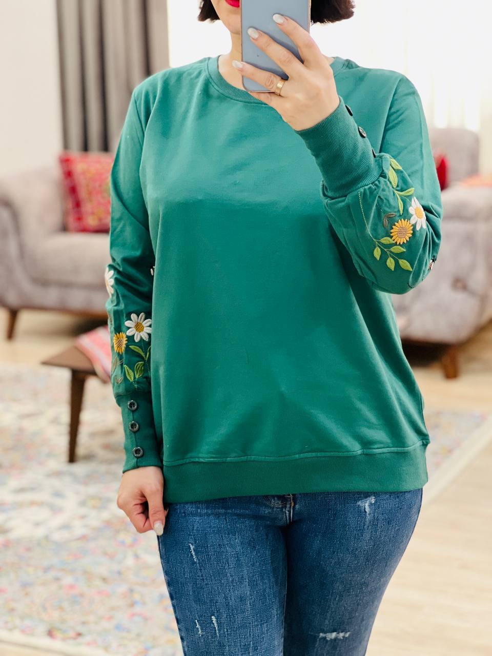 جنس پنبه گلکسی / حدودا 10 سانت کشسانی دارد / رنگ ثابت / گلدوزی شده / مچ دکمه دارد / کمه ها باز نمیشه / قواره ی هر تولیدی با تولیدی دیگر متفاوت است لطفا حتما سانت در نظر بگیرید