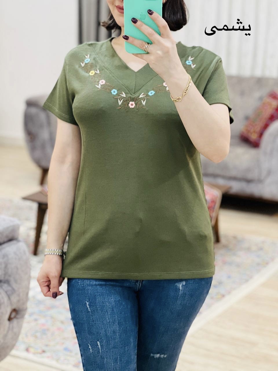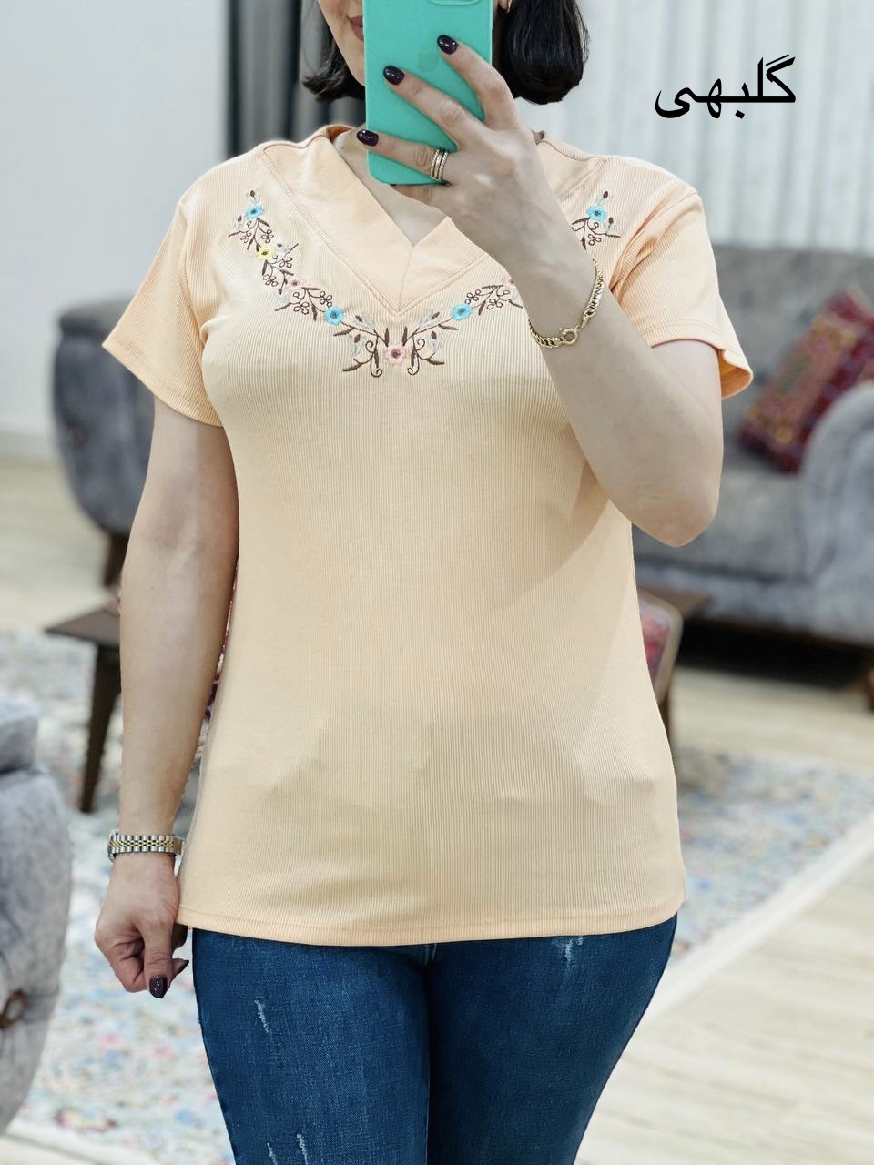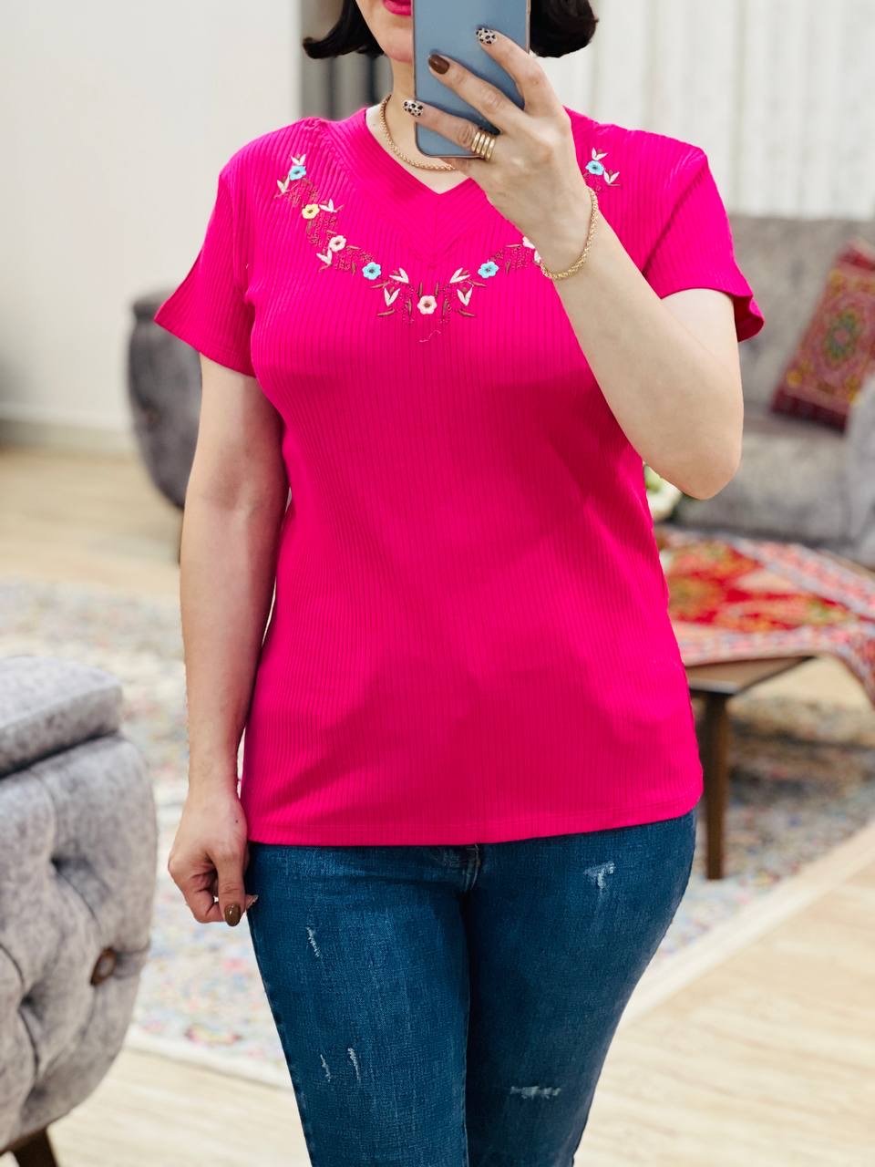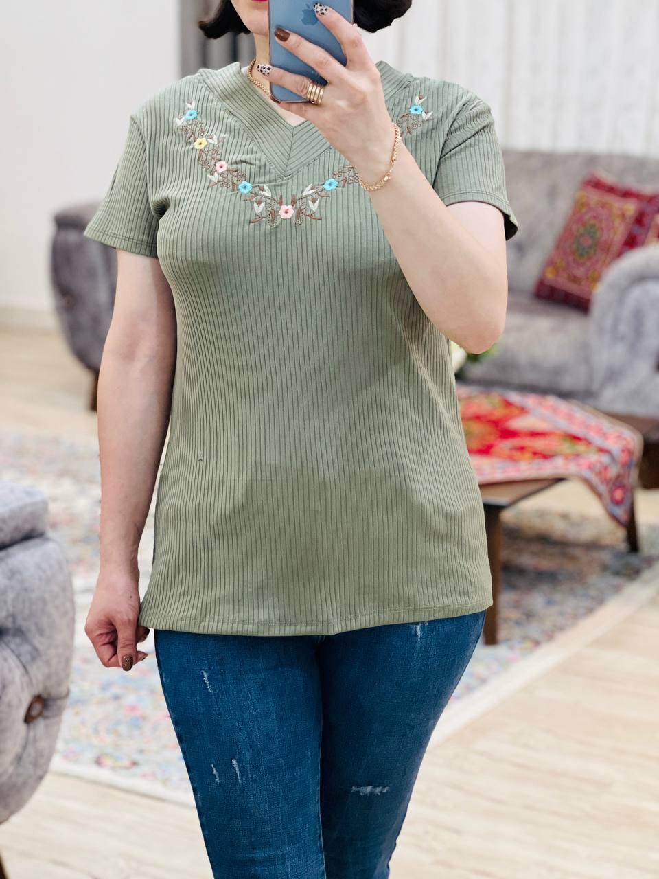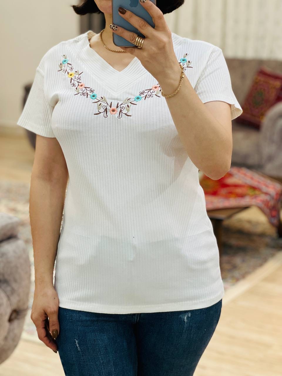 مناسب 36 تا 44 / دور سینه 90 / قد تیشرت 65 / قد آستین 14 / سرشانه 13 / تمام سانتها بدون کشسانی نوشته شده