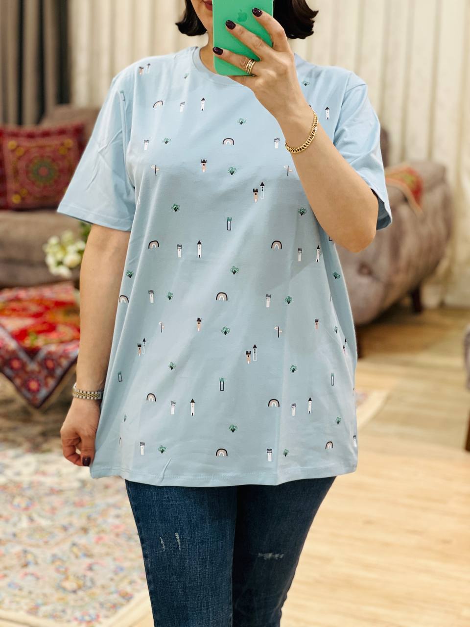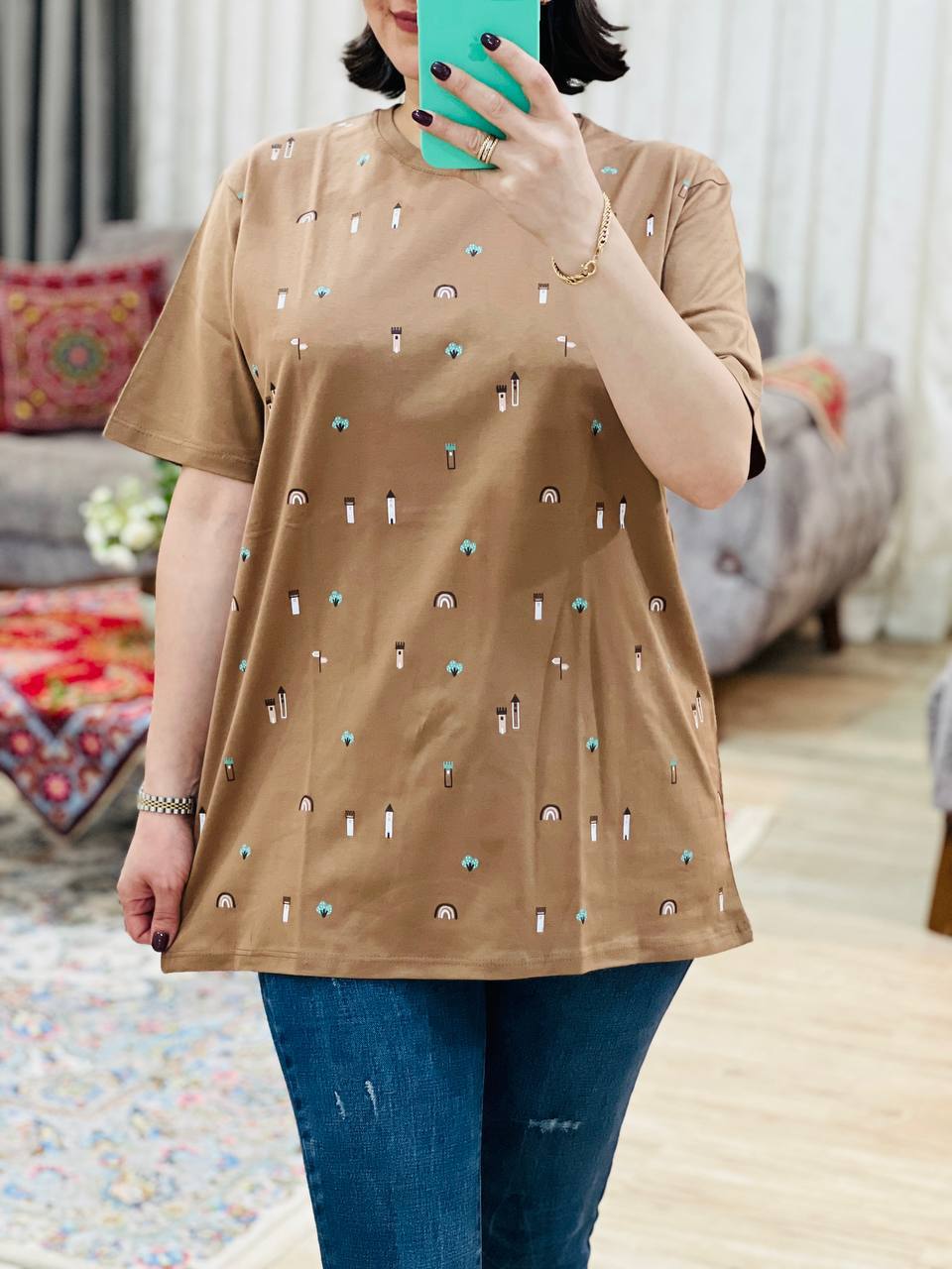 | فری سایز | مناسب 38 تا 46 / دور سینه 110 / قد تیشرت 73 / قد آستین 24 / سرشانه 13 / دور بازو 44 |