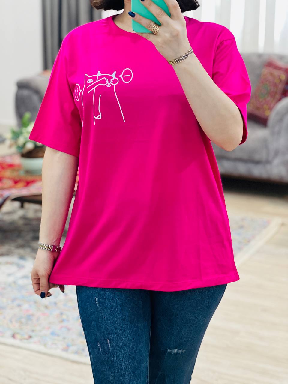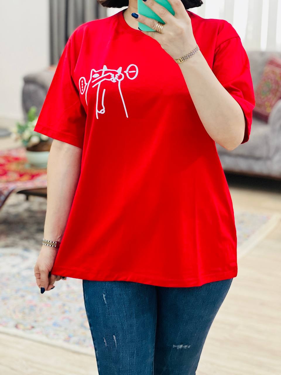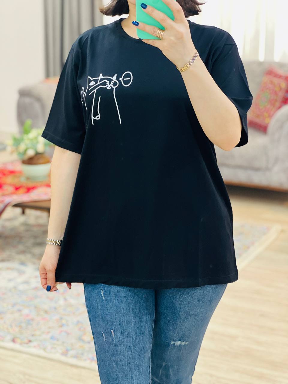فری سایز مناسب 38 تا 46 / دور سینه 112 / قد تیشرت 68 / قد آستین 24 / سرشانه 13