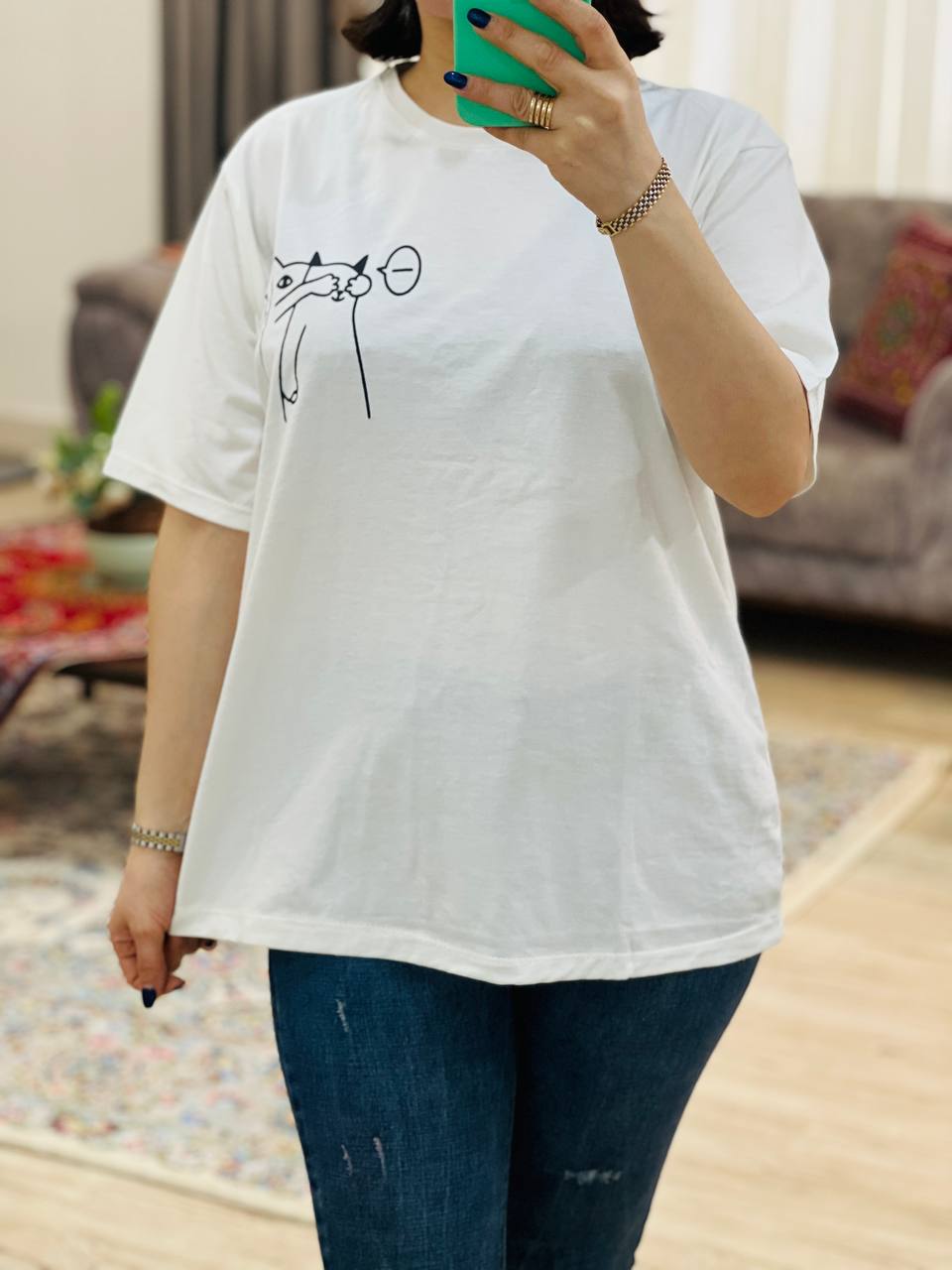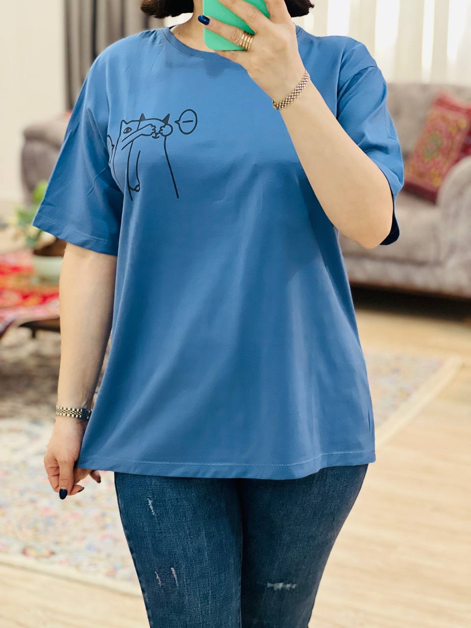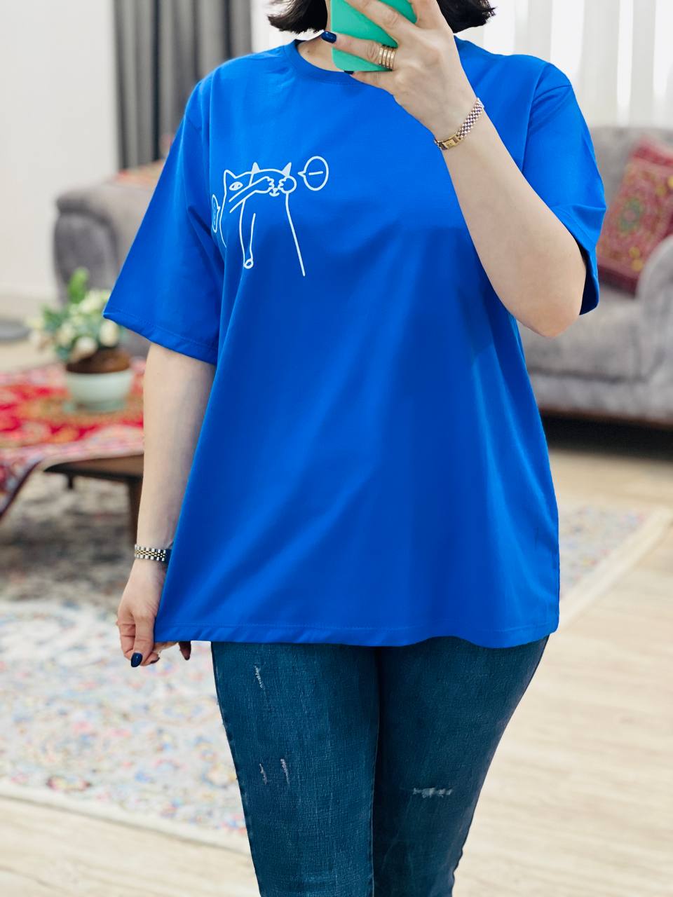 فری سایز مناسب 38 تا 46 / دور سینه 112 / قد تیشرت 68 / قد آستین 24 / سرشانه 13