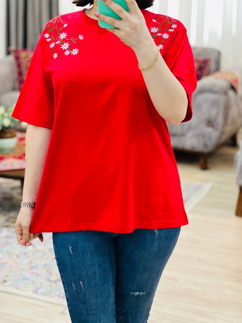 تیشرت سرشانه گلدوزی