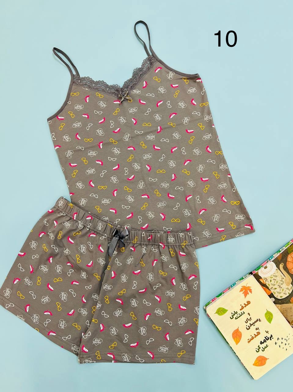 | فری سایز | مناسب 38 تا 46 / دور سینه88 / قد تاپ 65/ قد شورتک33/ دور باسن 102 |