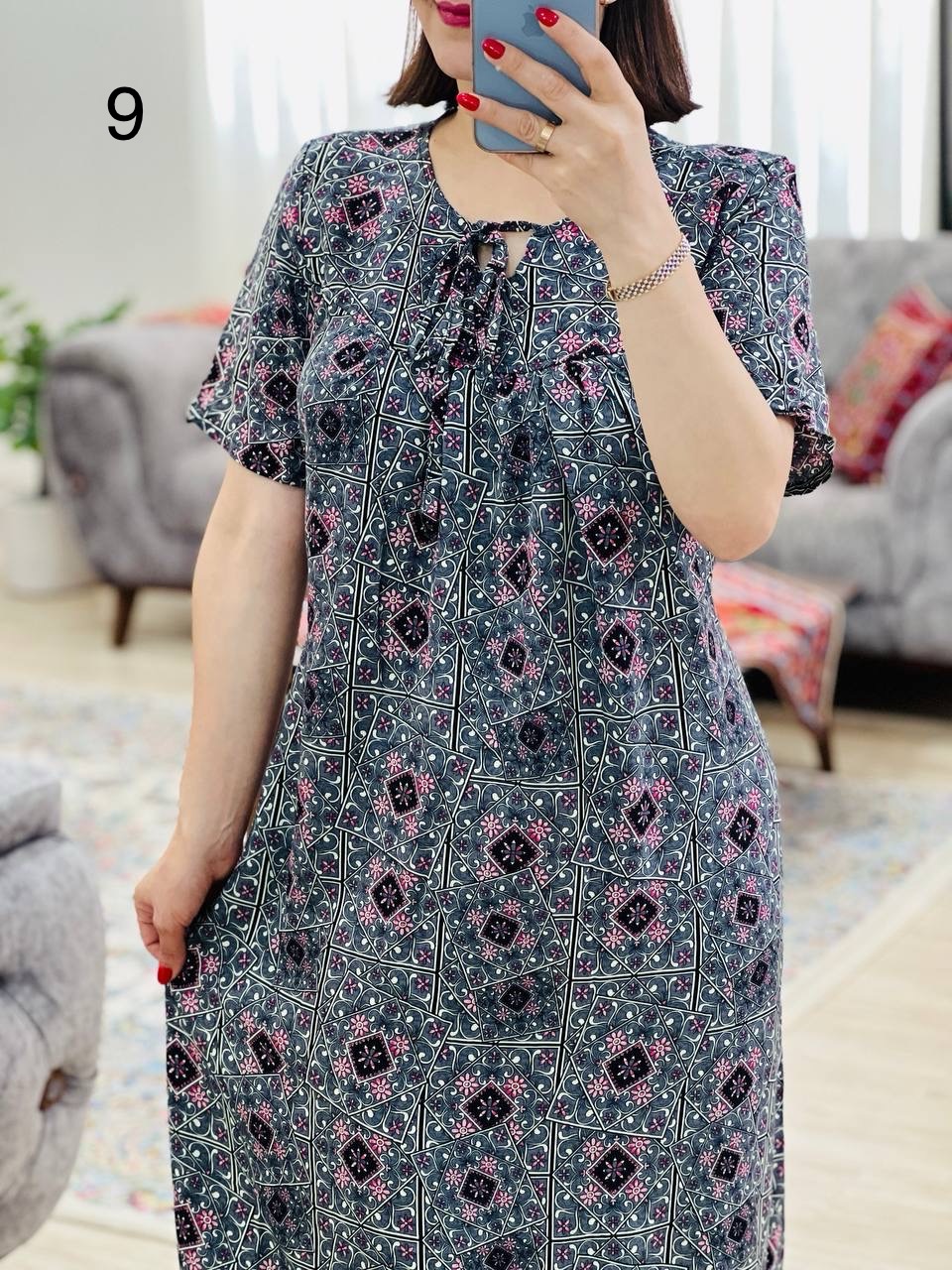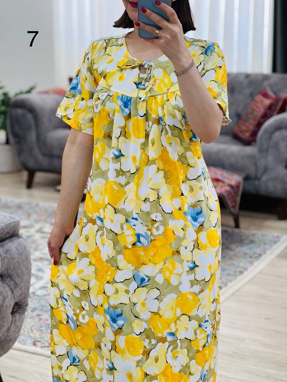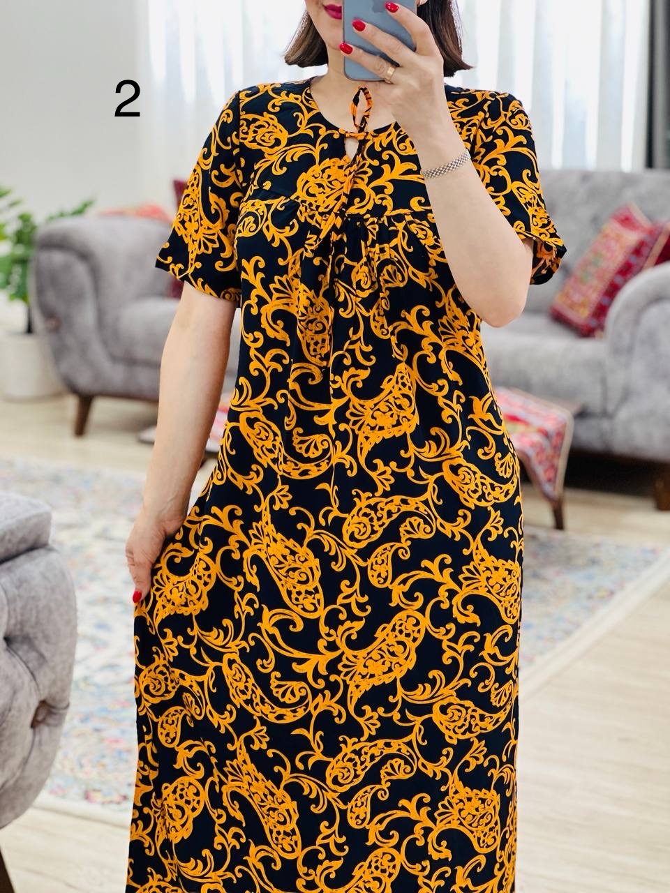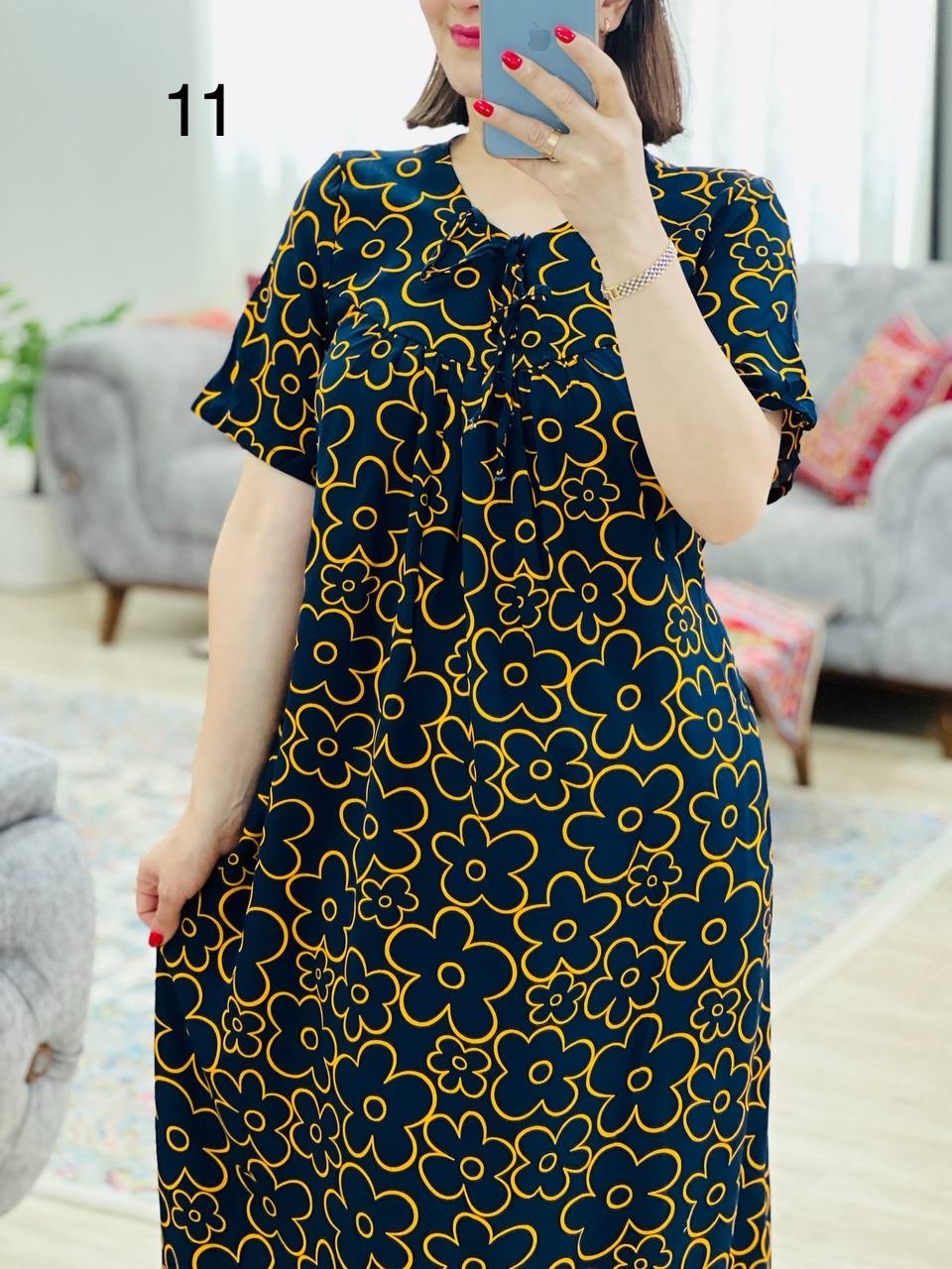 جنس نخ تایلندی / زیر سینه برش دارد / از قد دو سانت آبرفت دارد / از عرض اصلا آبرفت ندارد / دو طرف پیراهن بند دارد / قواره ی هر تولیدی با تولیدی دیگر متفاوت است لطفا حتما سانت در نظر بگیرید