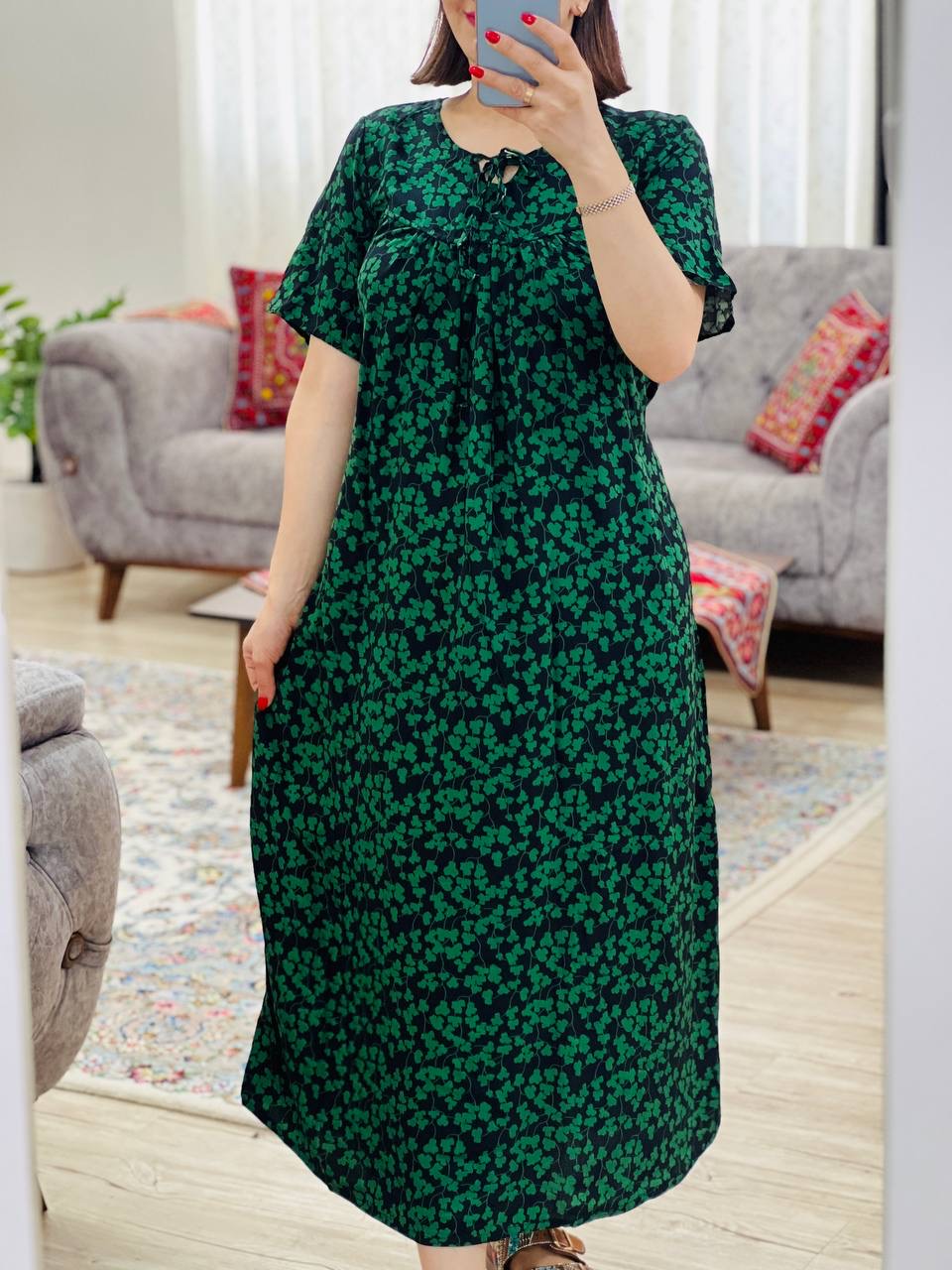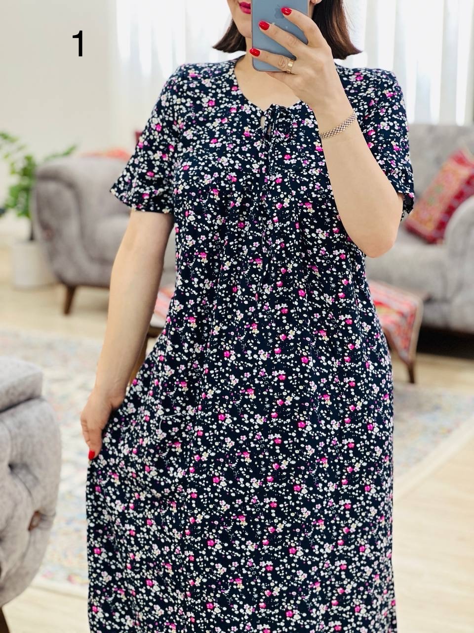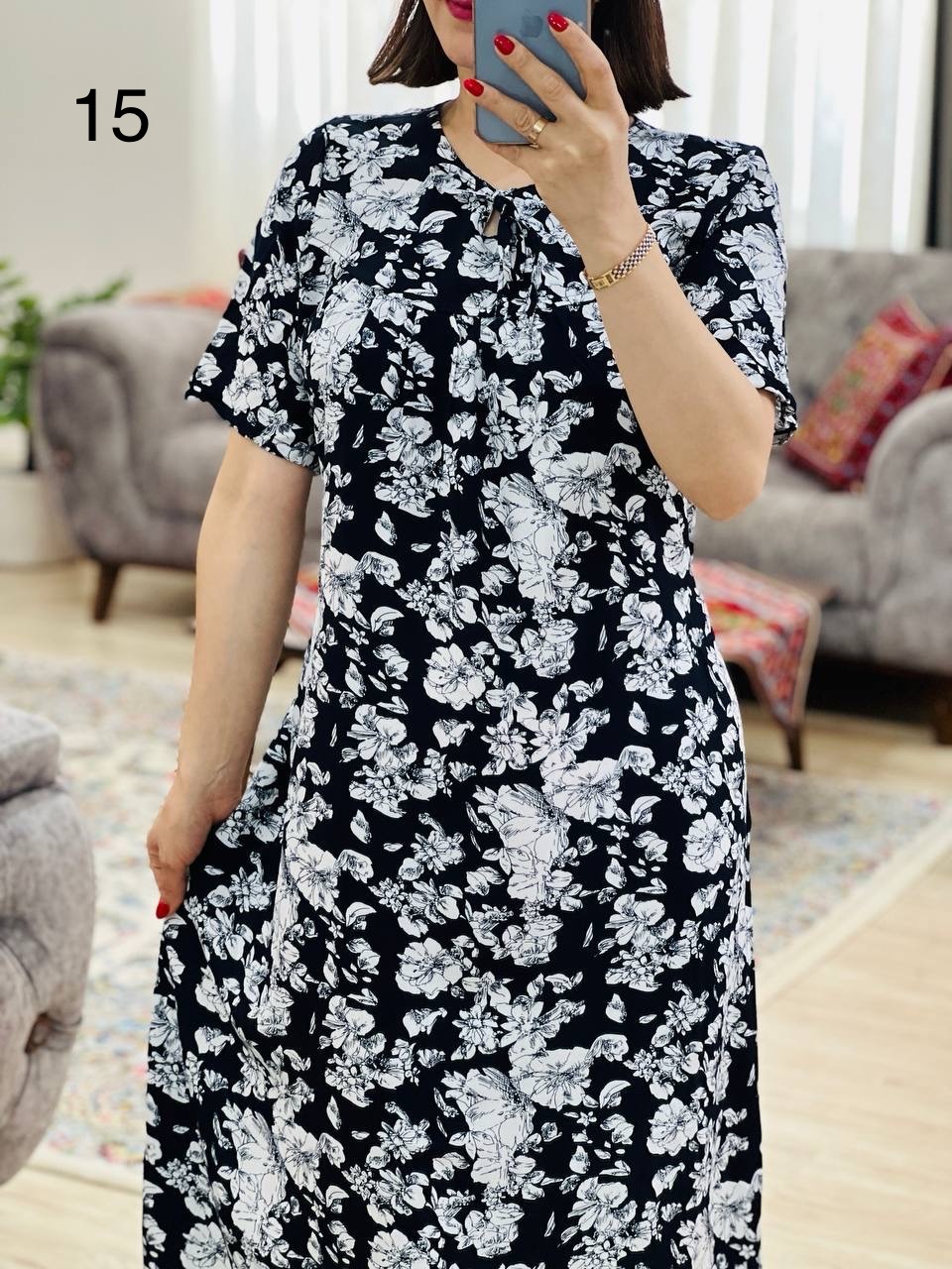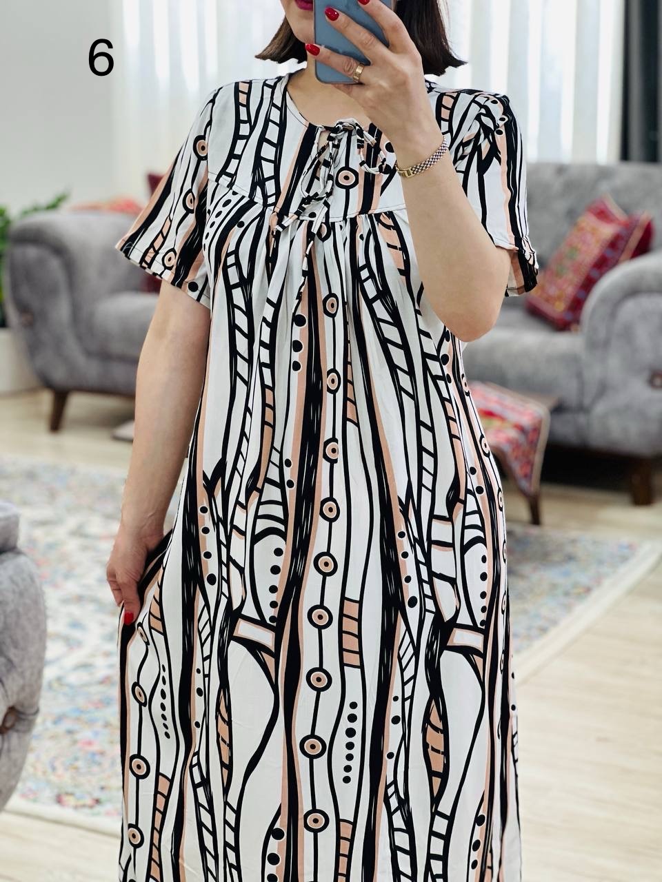 جنس نخ تایلندی / زیر سینه برش دارد / از قد دو سانت آبرفت دارد / از عرض اصلا آبرفت ندارد / دو طرف پیراهن بند دارد / قواره ی هر تولیدی با تولیدی دیگر متفاوت است لطفا حتما سانت در نظر بگیرید