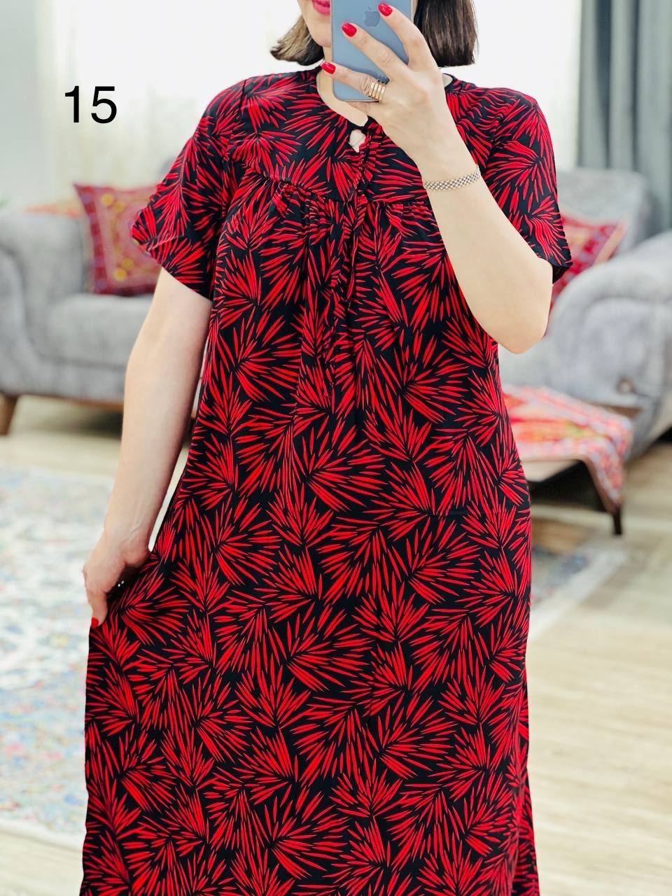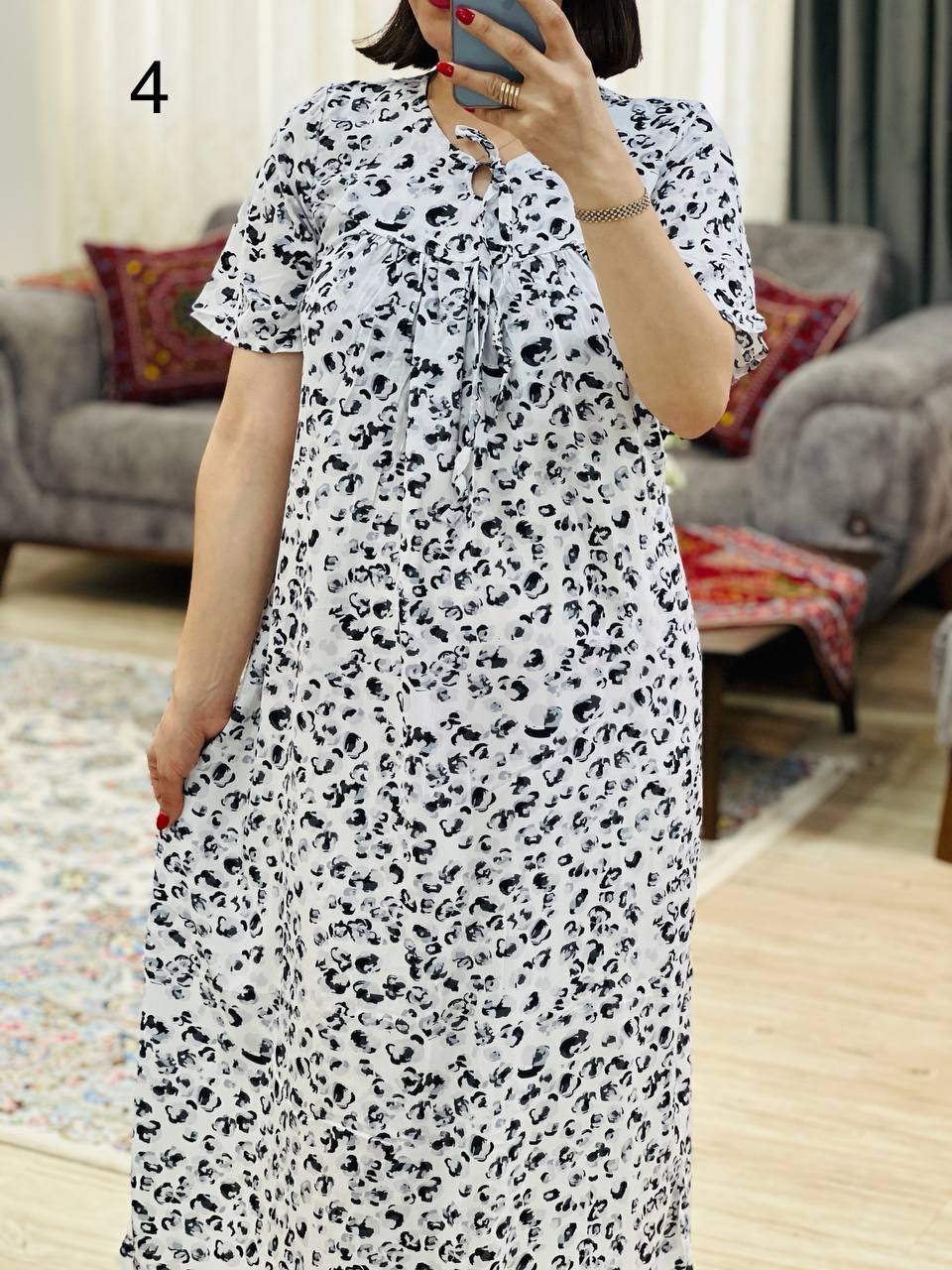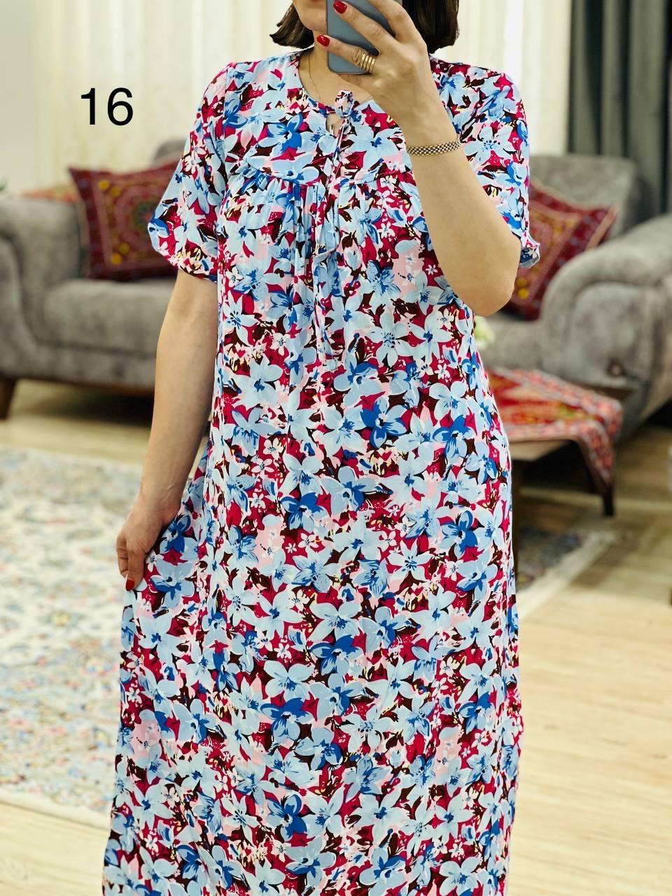 جنس نخ تایلندی / زیر سینه برش دارد / از قد دو سانت آبرفت دارد / از عرض اصلا آبرفت ندارد / دو طرف پیراهن بند دارد / قواره ی هر تولیدی با تولیدی دیگر متفاوت است لطفا حتما سانت در نظر بگیرید.