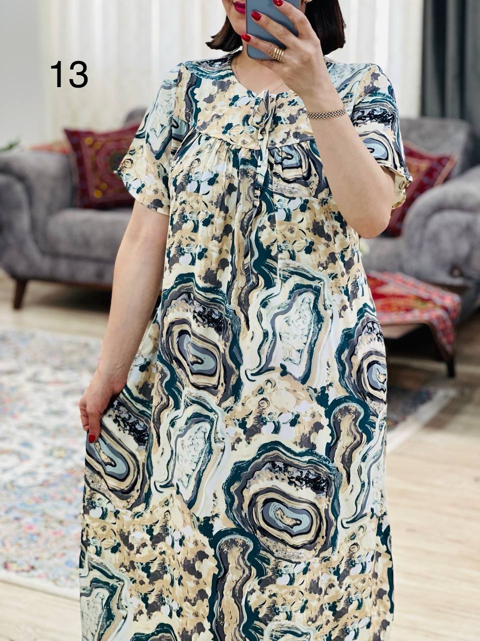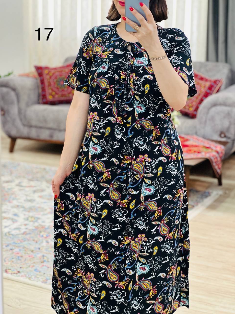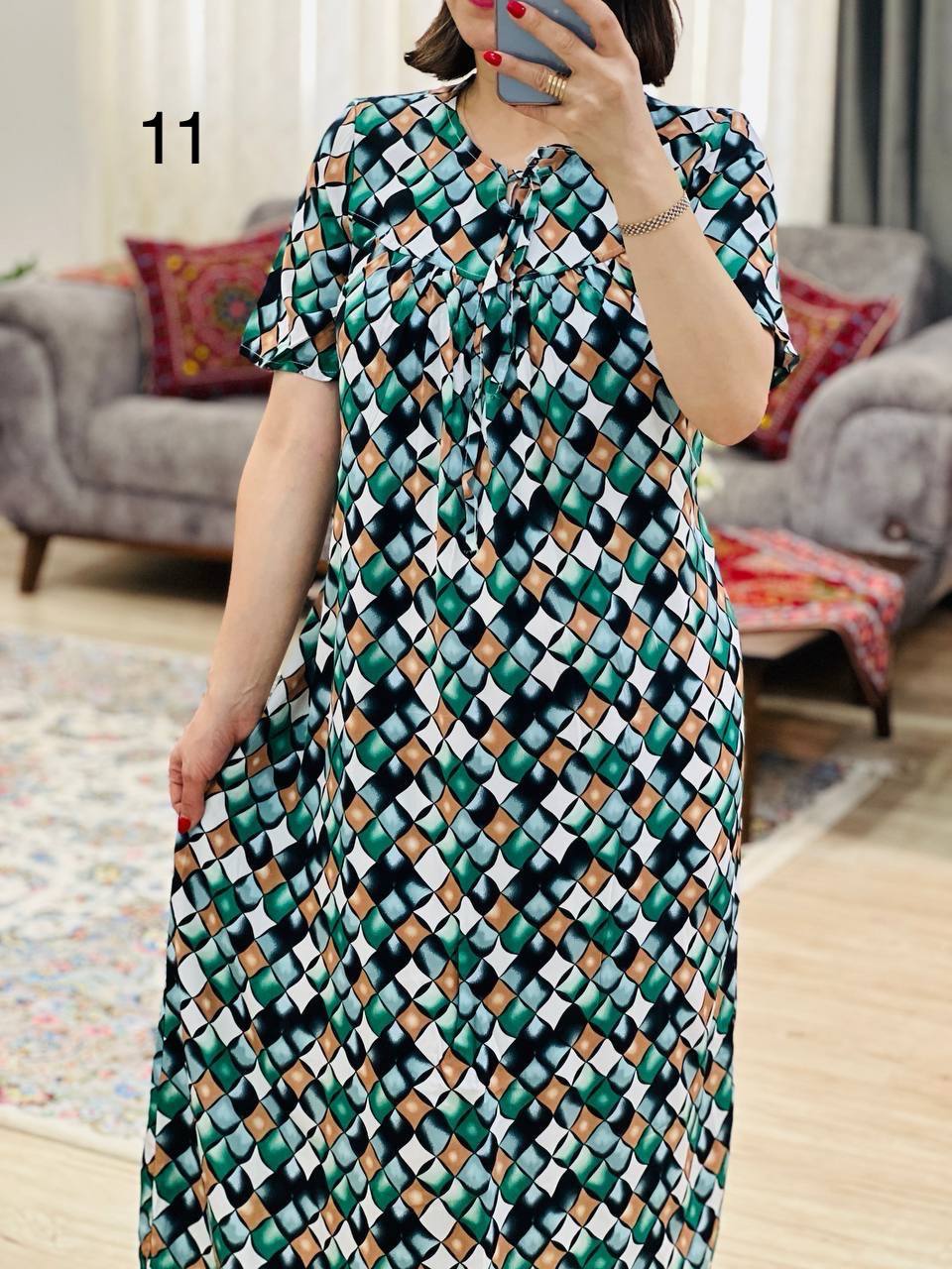 جنس نخ تایلندی / زیر سینه برش دارد / از قد دو سانت آبرفت دارد / از عرض اصلا آبرفت ندارد / دو طرف پیراهن بند دارد / قواره ی هر تولیدی با تولیدی دیگر متفاوت است لطفا حتما سانت در نظر بگیرید.