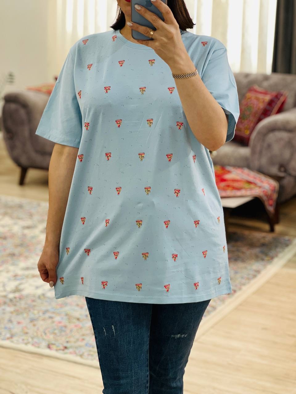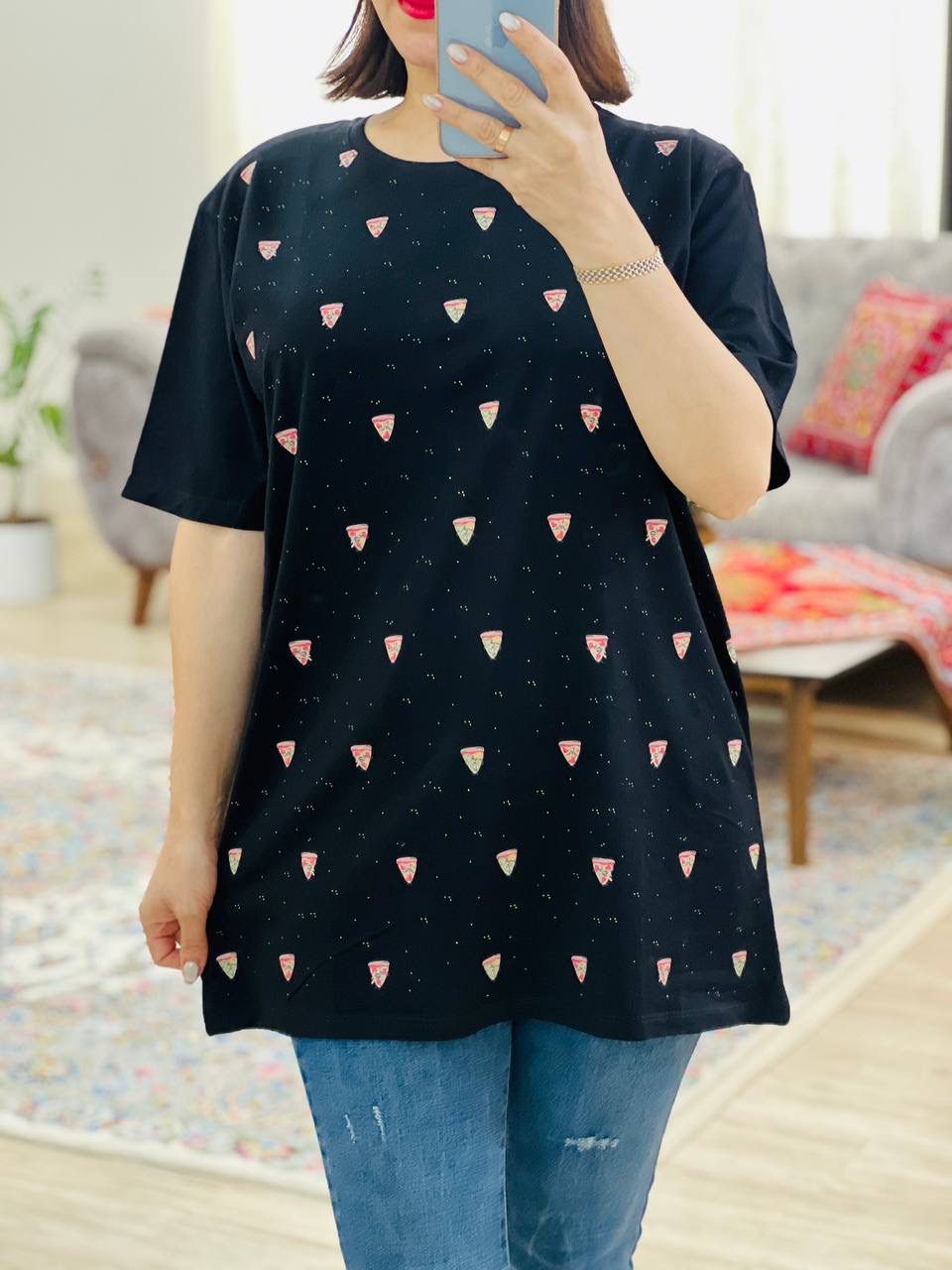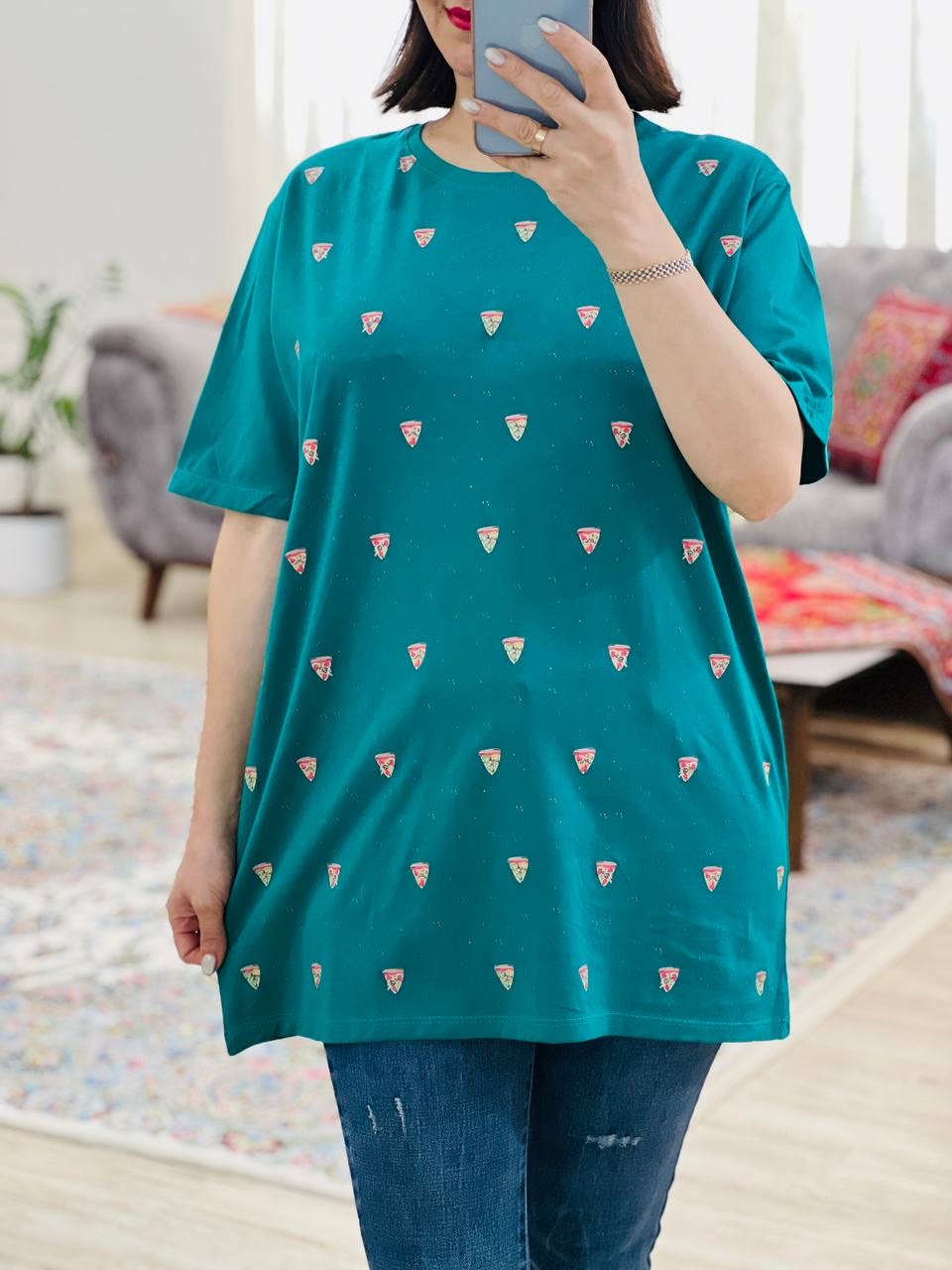 | فری سایز | مناسب 38 تا 46 / دور سینه 110 / قد تیشرت 73 / قد آستین 24 / سرشانه 13 / دور بازو 44 |