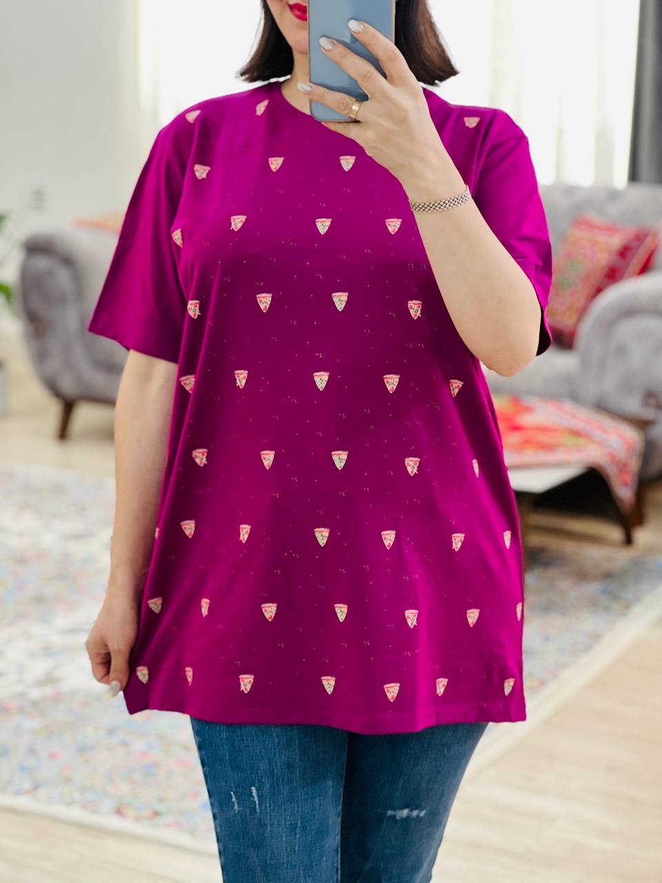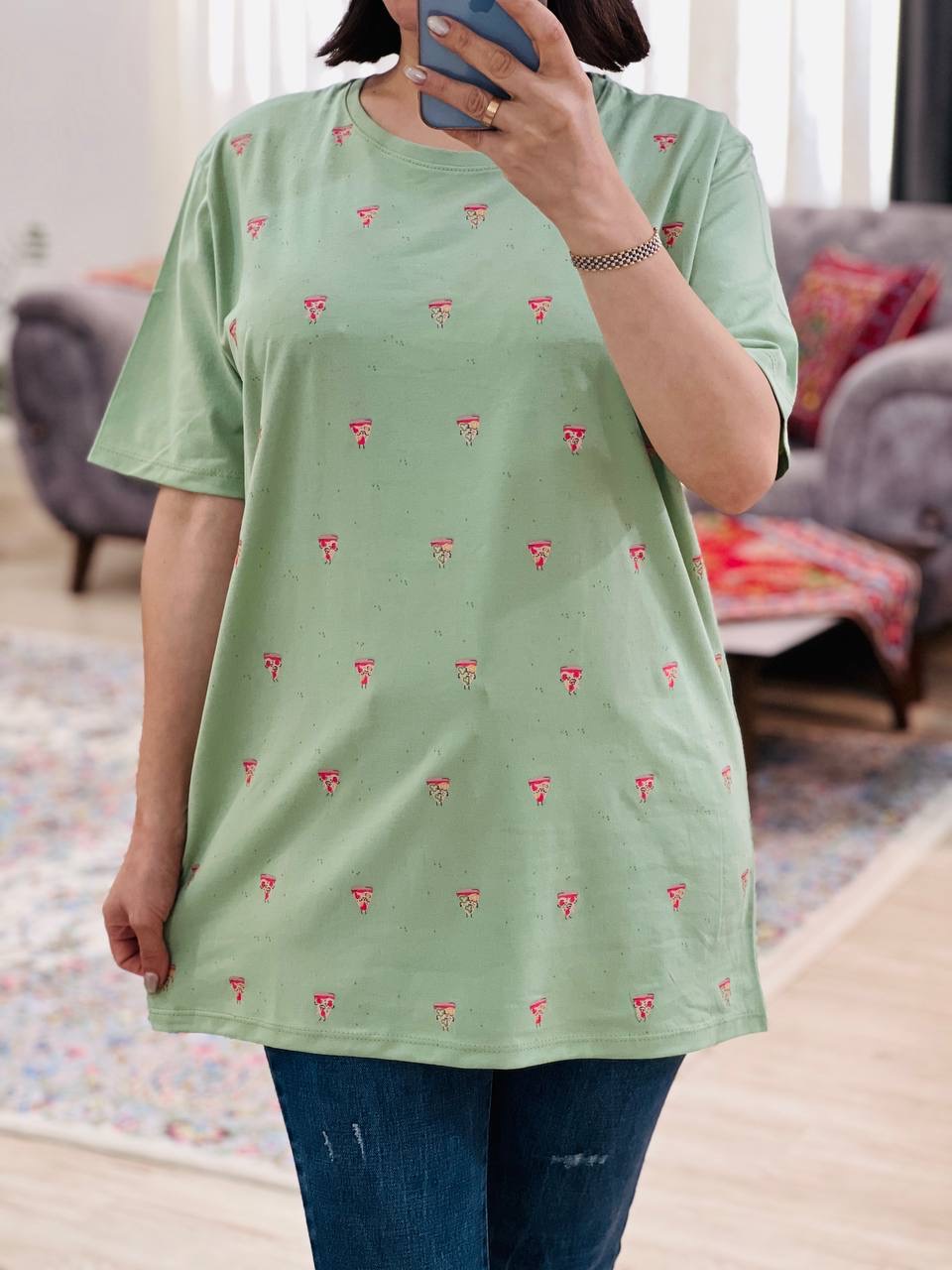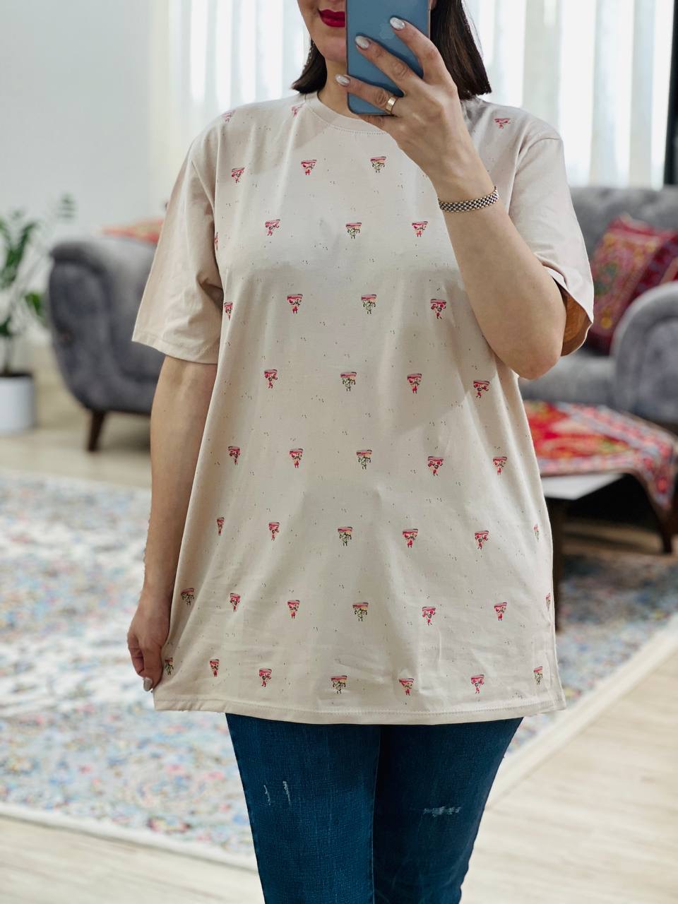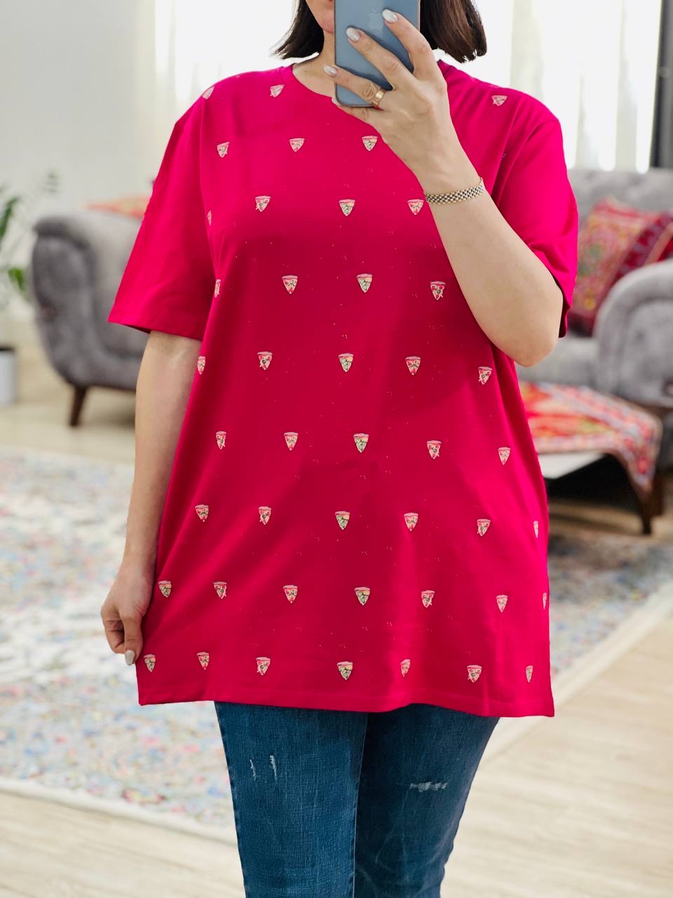 | فری سایز | مناسب 38 تا 46 / دور سینه 110 / قد تیشرت 73 / قد آستین 24 / سرشانه 13 / دور بازو 44 |