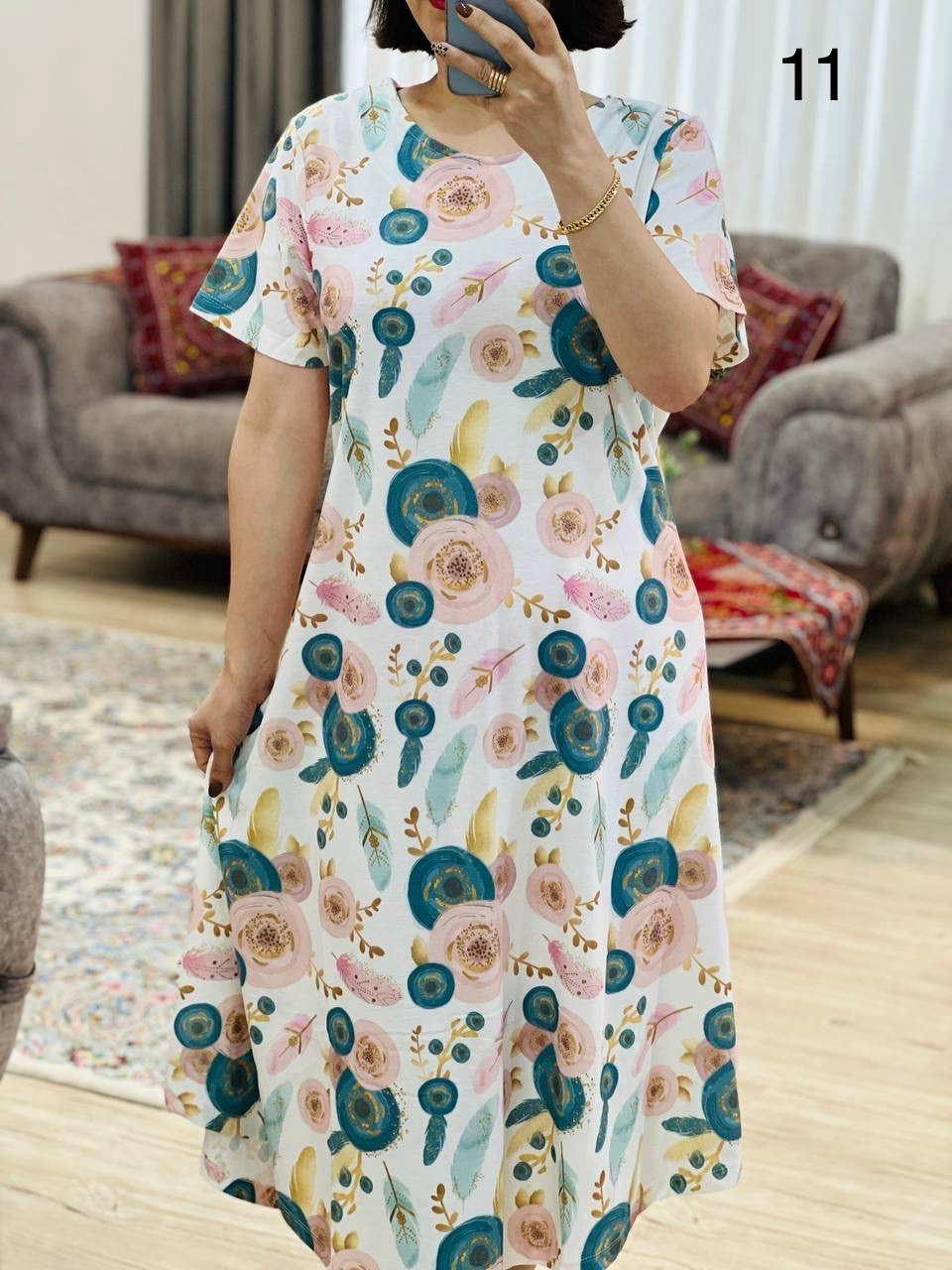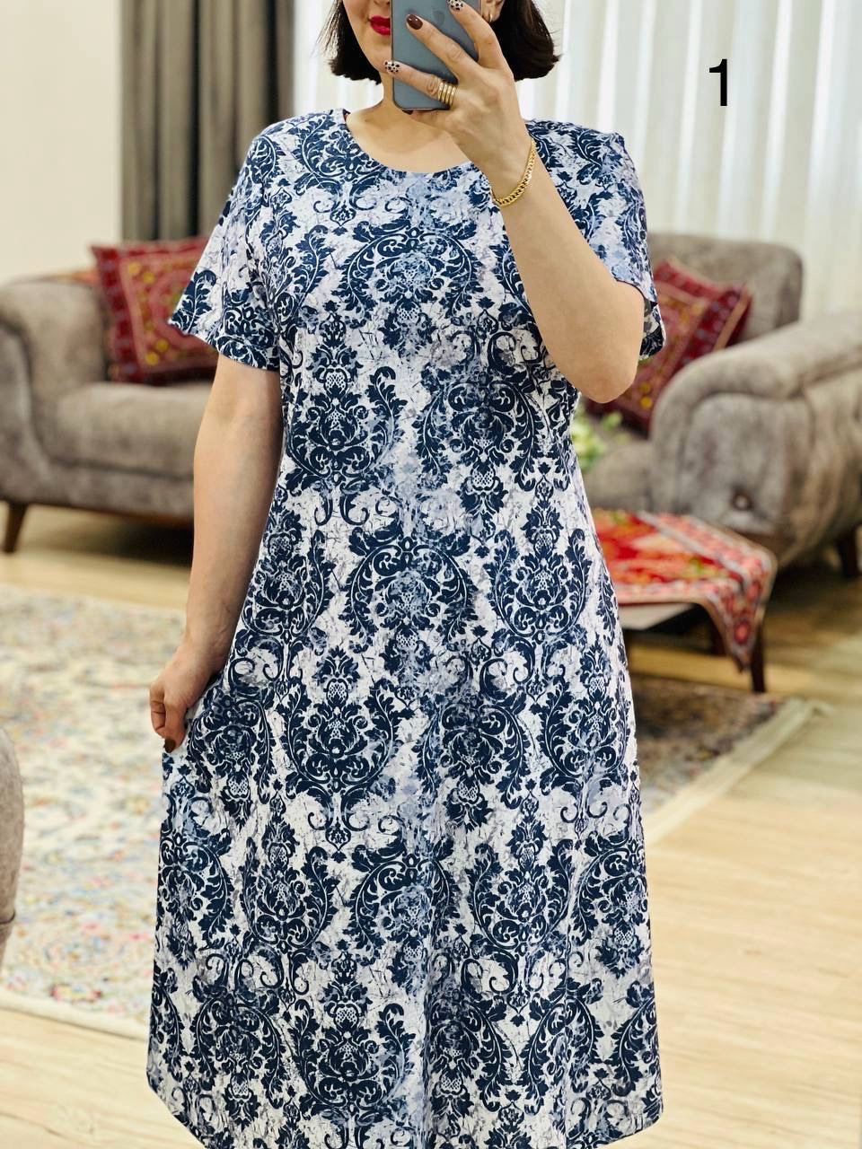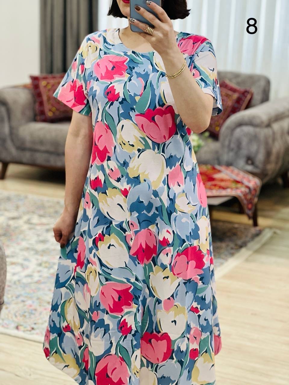 جنس پنبه / حدودا 10 سانت کشسانی دارد / دو طرف بند دارد و میتونید از پشت ببندید / پایین پیراهن کلوش میباشد / قواره ی هر تولیدی با تولیدی دیگر متفاوت است لطفا حتما سانت در نظر بگیرید.