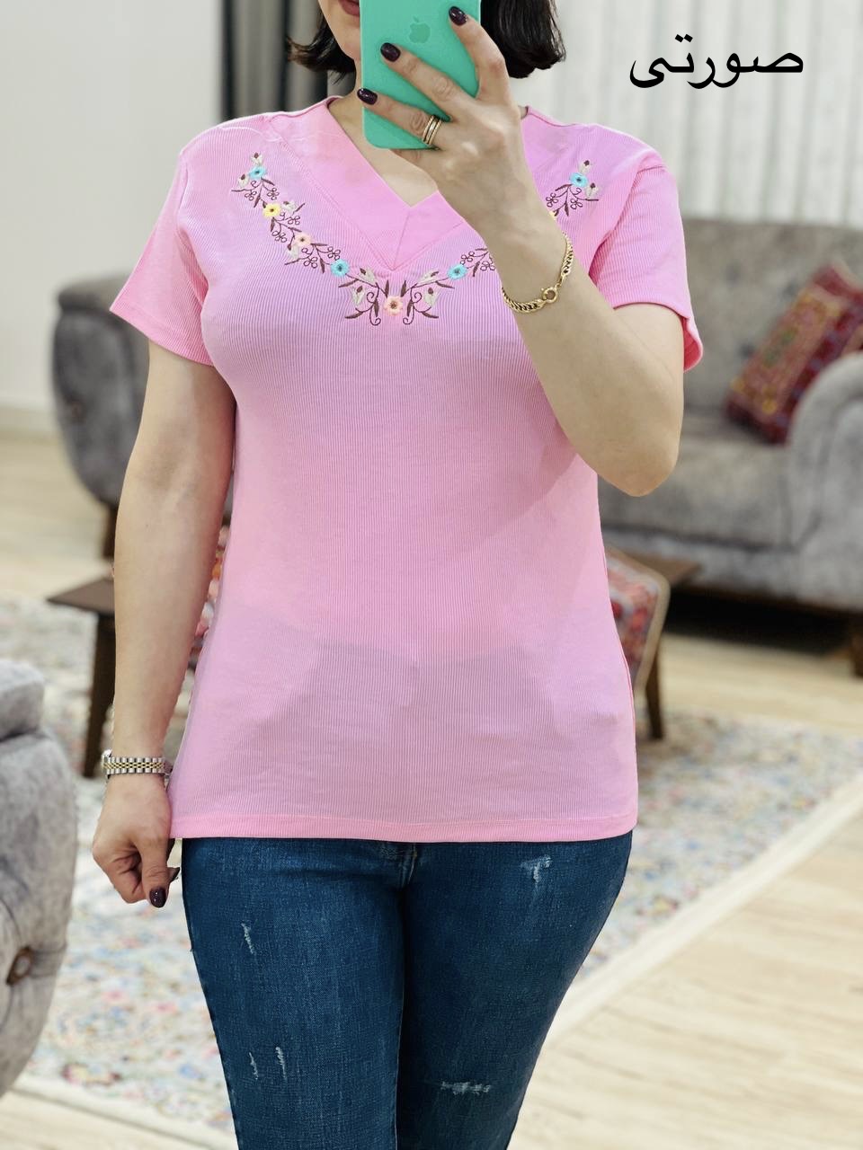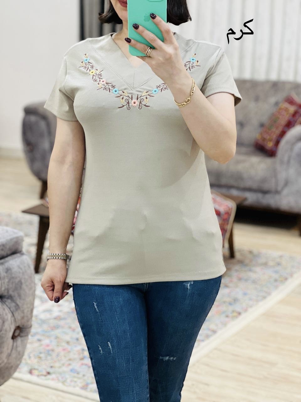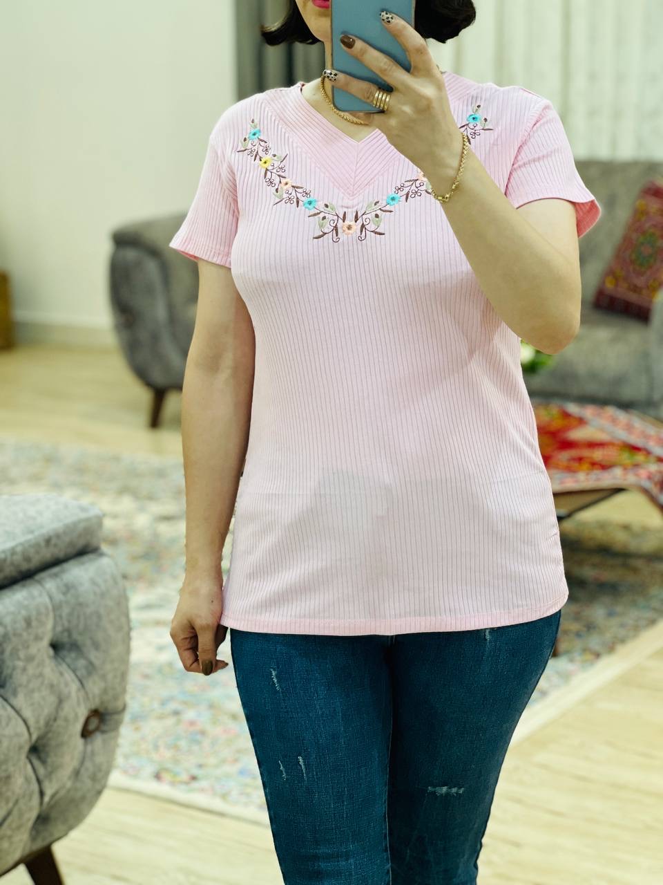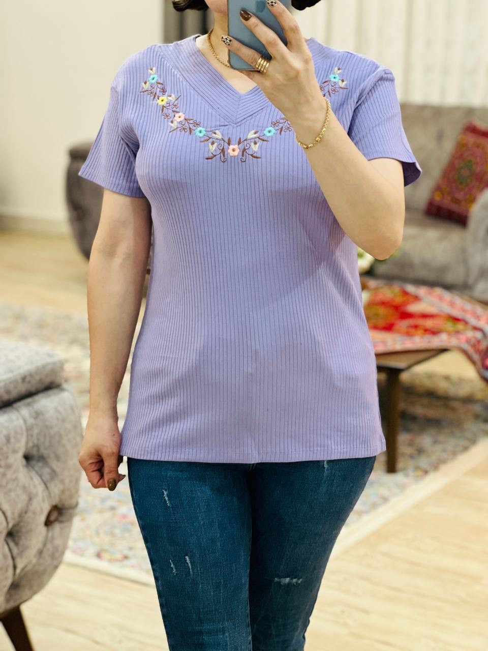 مناسب 36 تا 44 / دور سینه 90 / قد تیشرت 65 / قد آستین 14 / سرشانه 13 / تمام سانتها بدون کشسانی نوشته شده