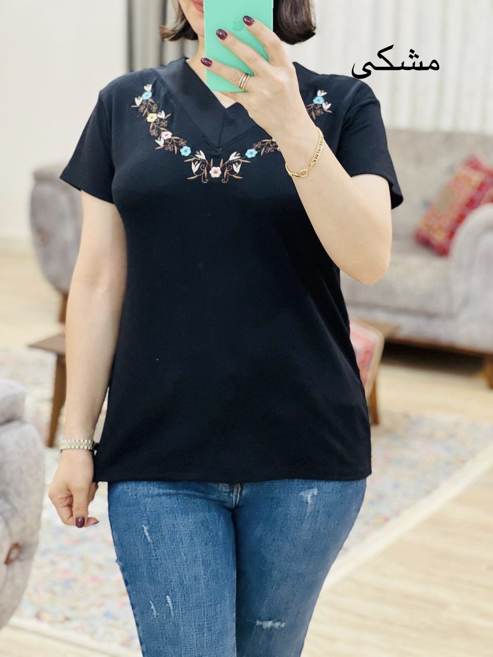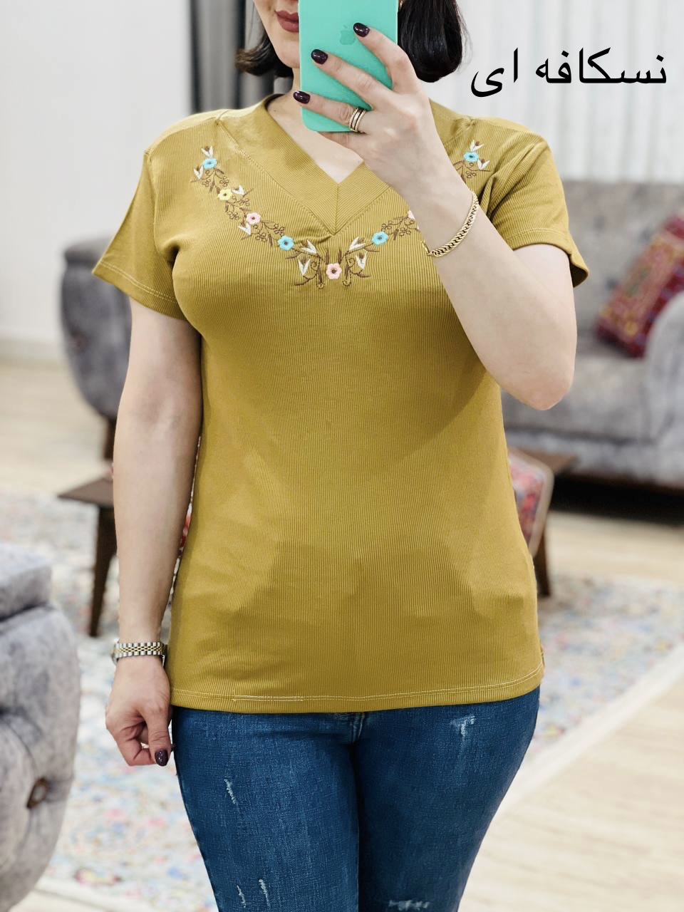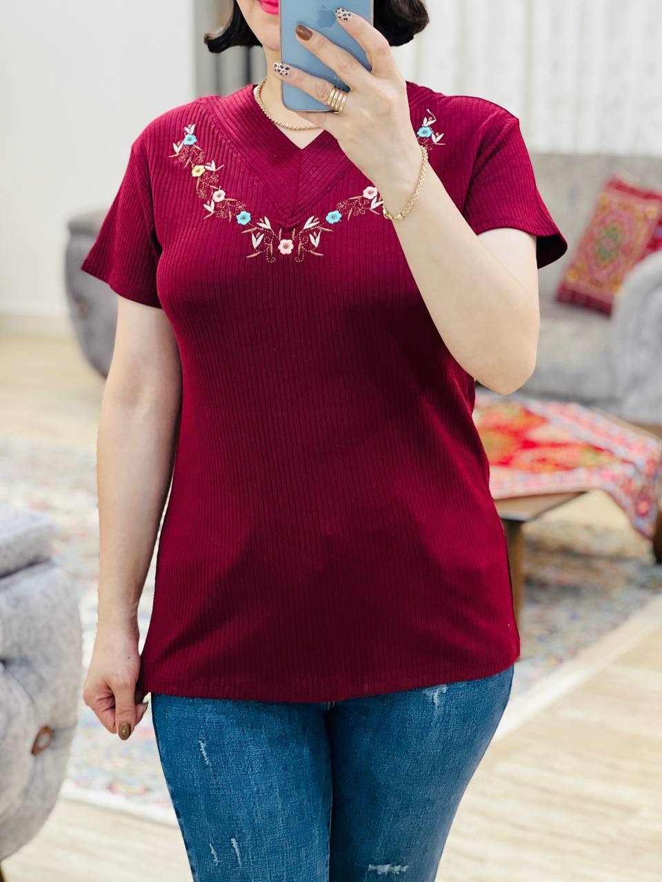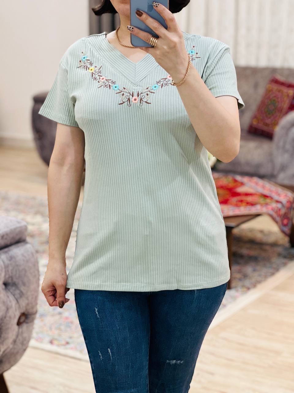 مناسب 36 تا 44 / دور سینه 90 / قد تیشرت 65 / قد آستین 14 / سرشانه 13 / تمام سانتها بدون کشسانی نوشته شده