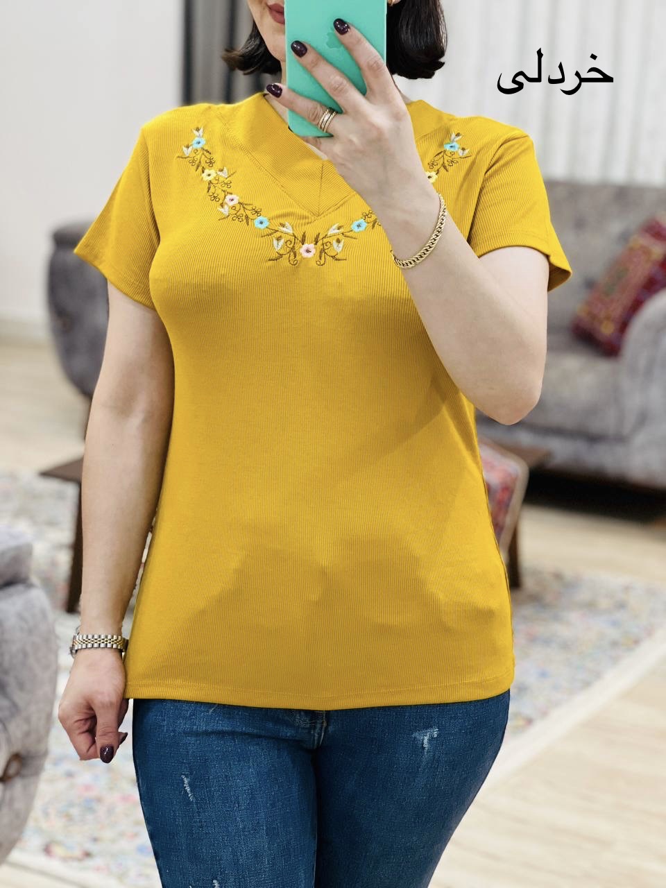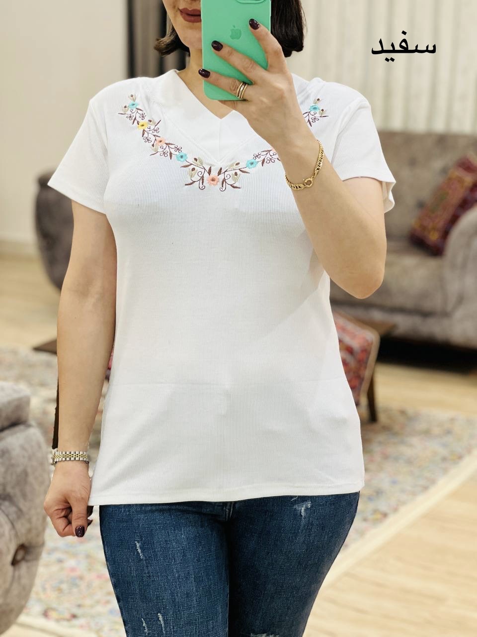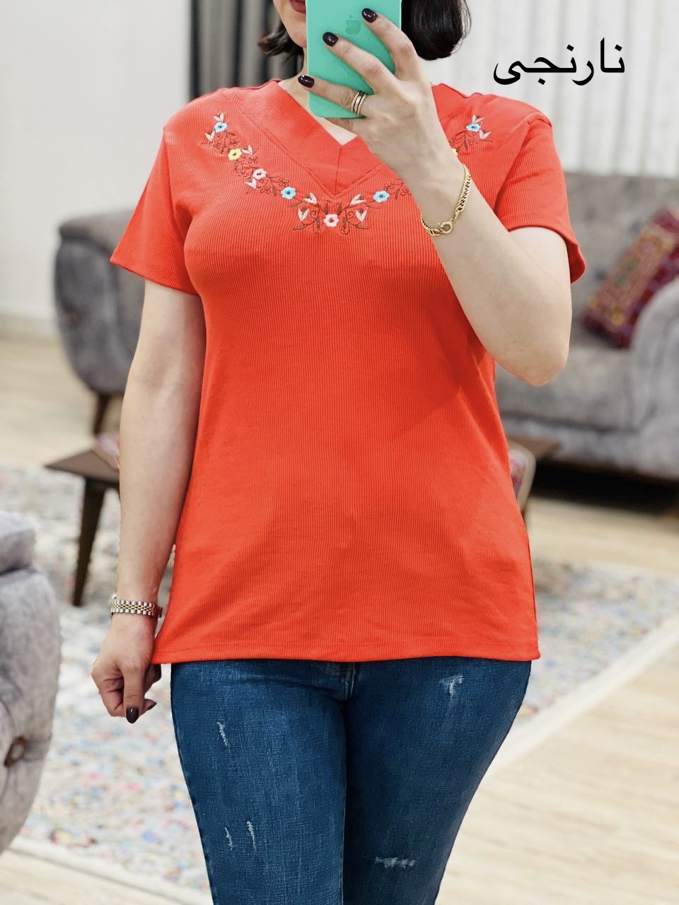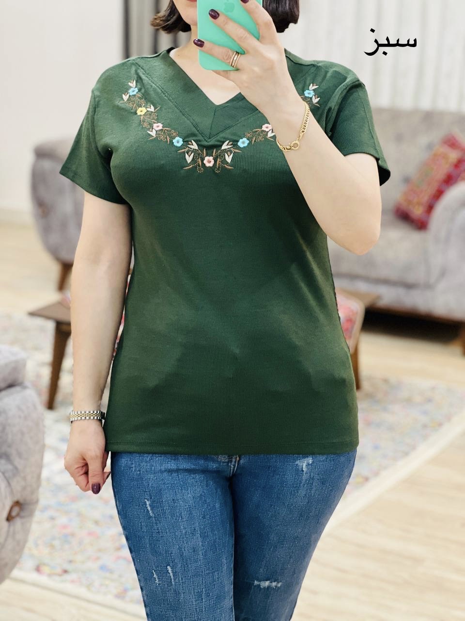 مناسب 36 تا 44 / دور سینه 90 / قد تیشرت 65 / قد آستین 14 / سرشانه 13 / تمام سانتها بدون کشسانی نوشته شده