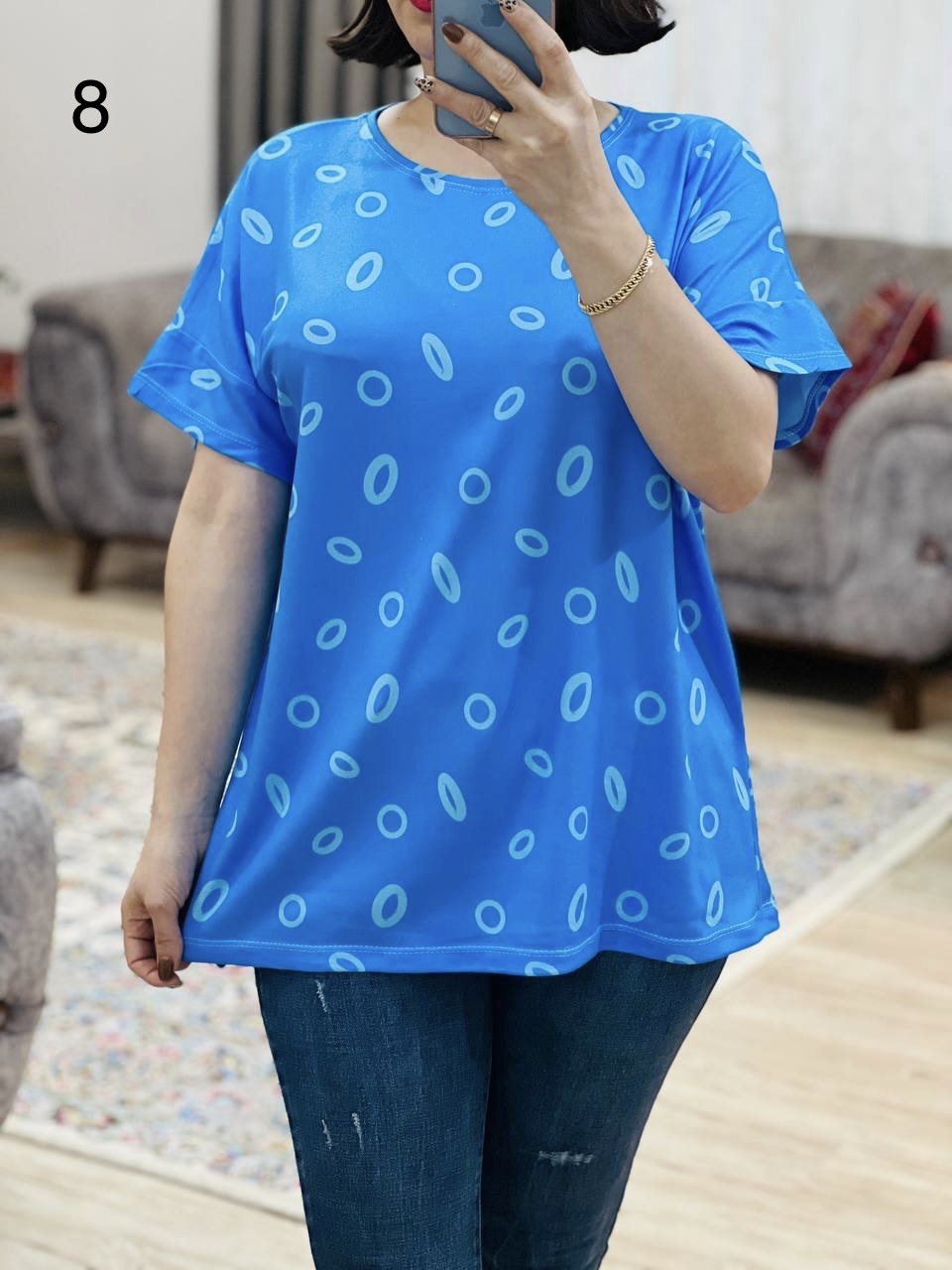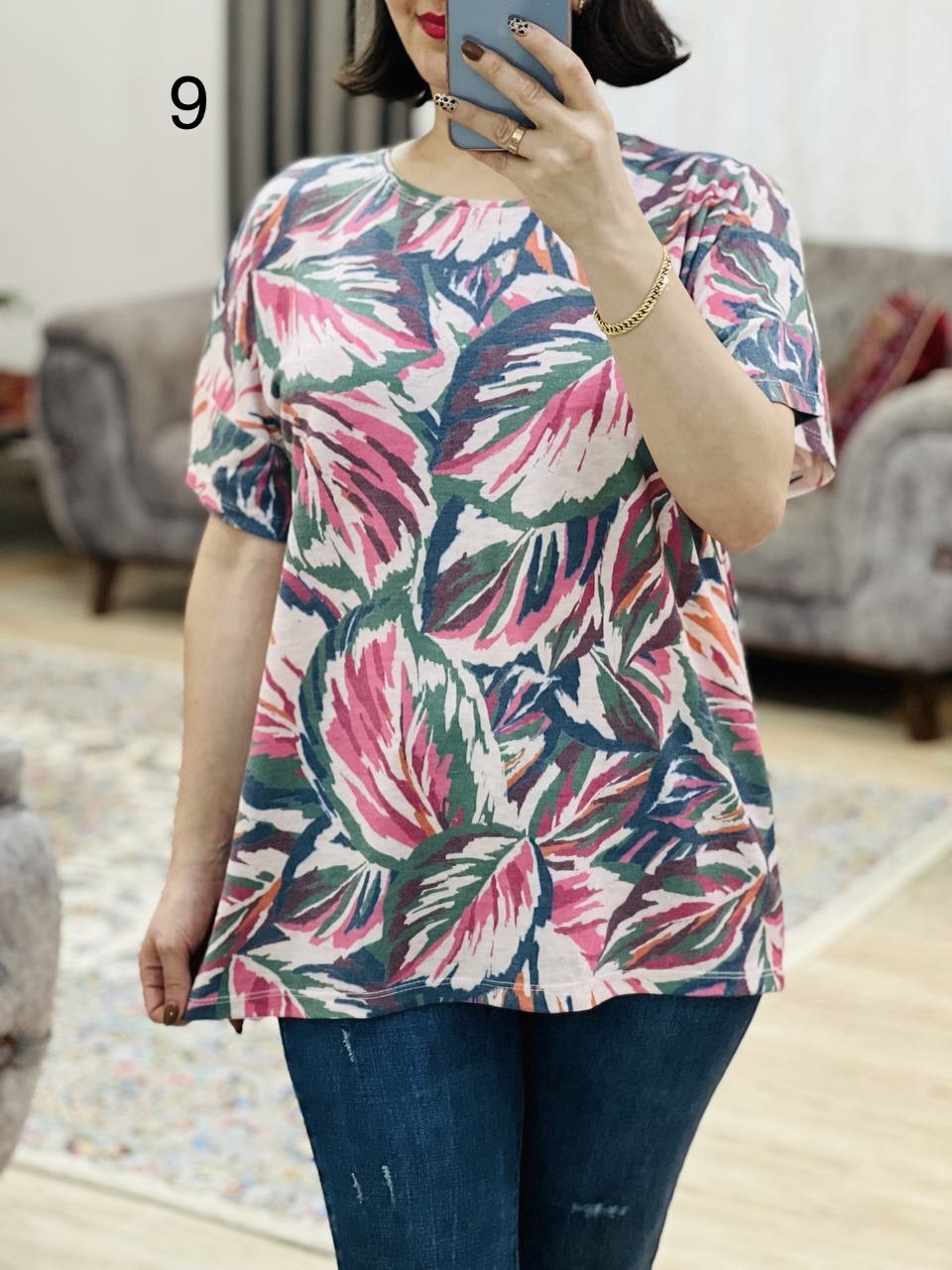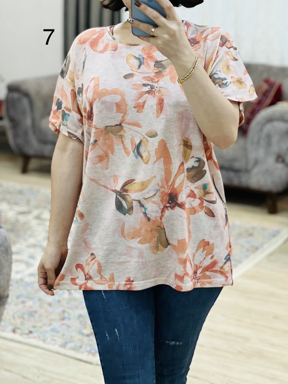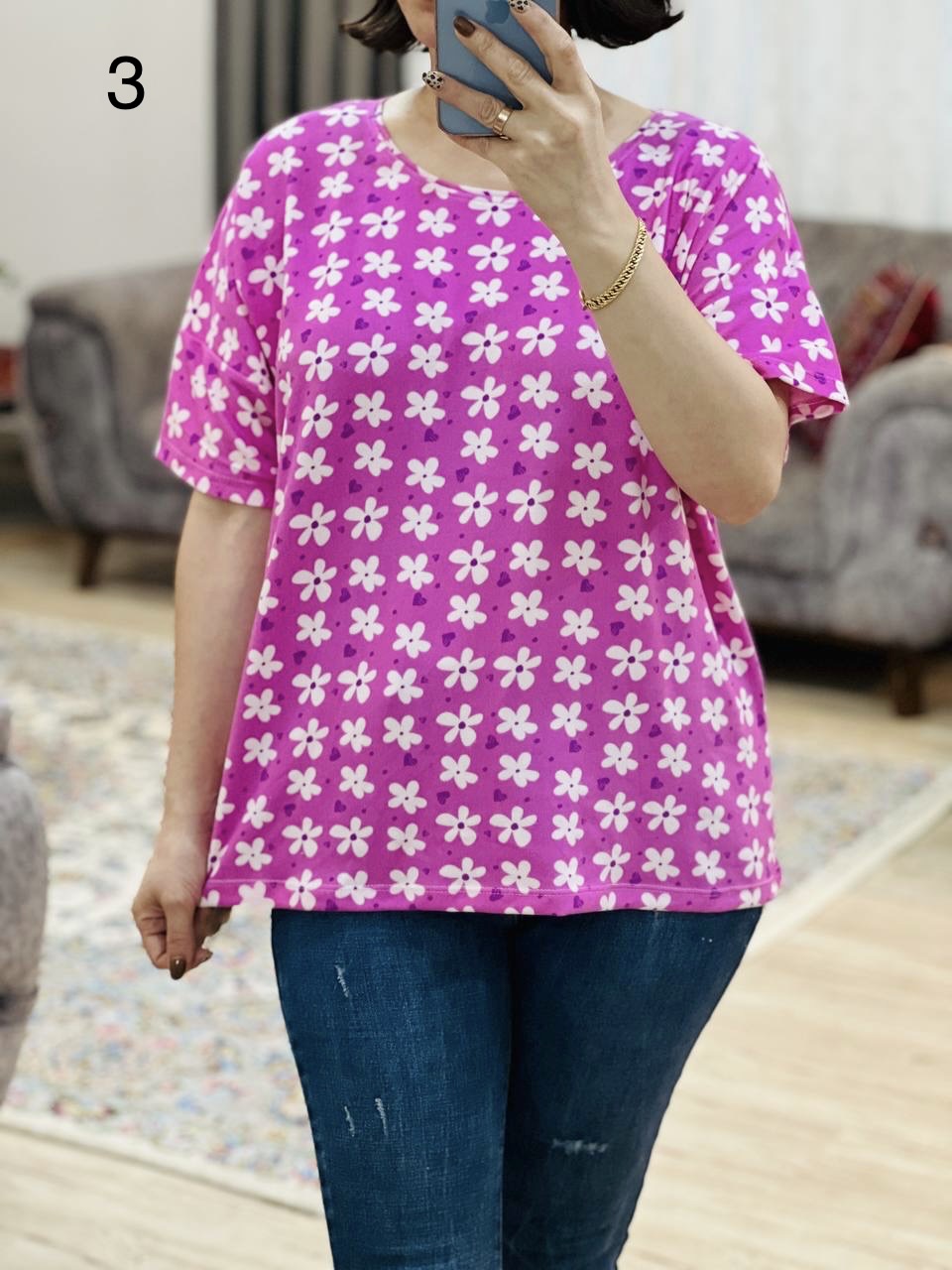 | فری سایز | مناسب 38 تا 50 / دور سینه 120 / قد تیشرت 68 / قد آستین از یقه 30 |