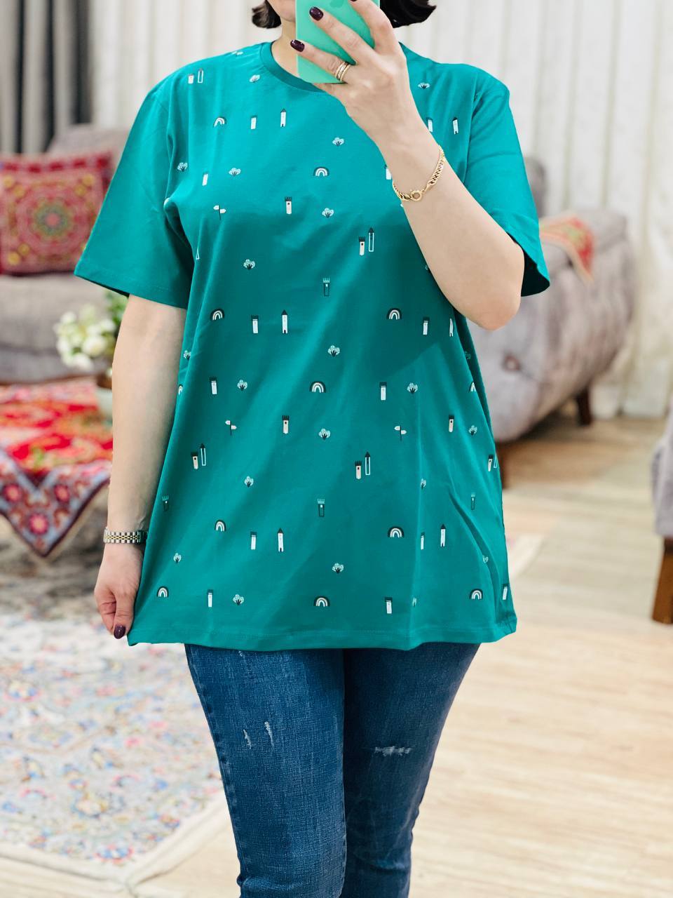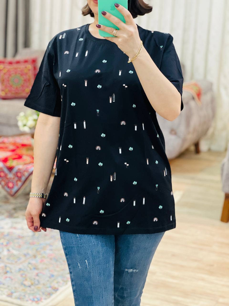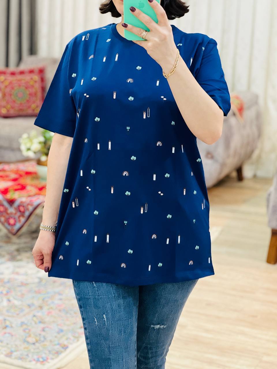 مناسب 38 تا 46 / دور سینه 110 / قد تیشرت 73 / قد آستین 24 / سرشانه 13 / دور بازو 44
