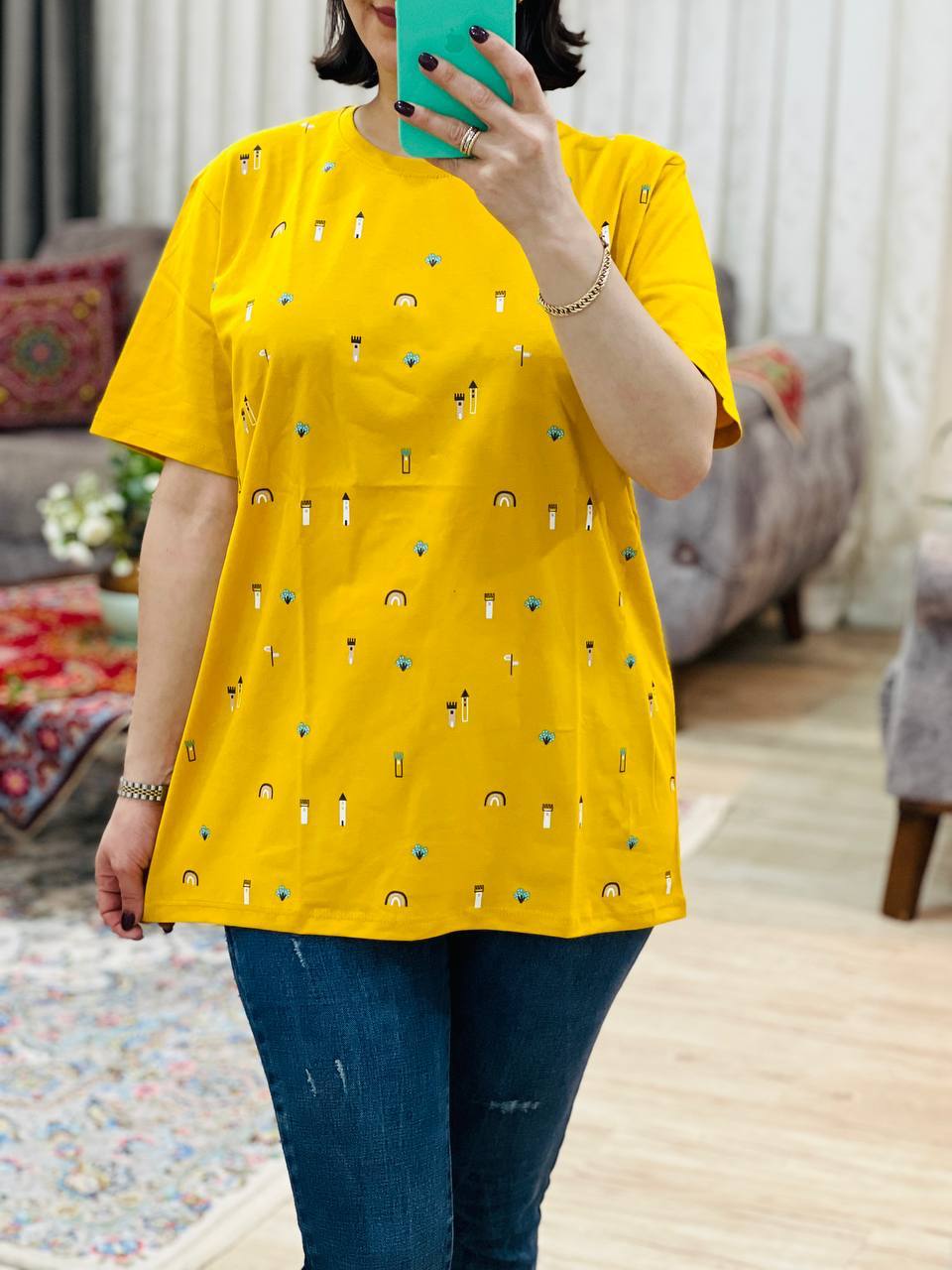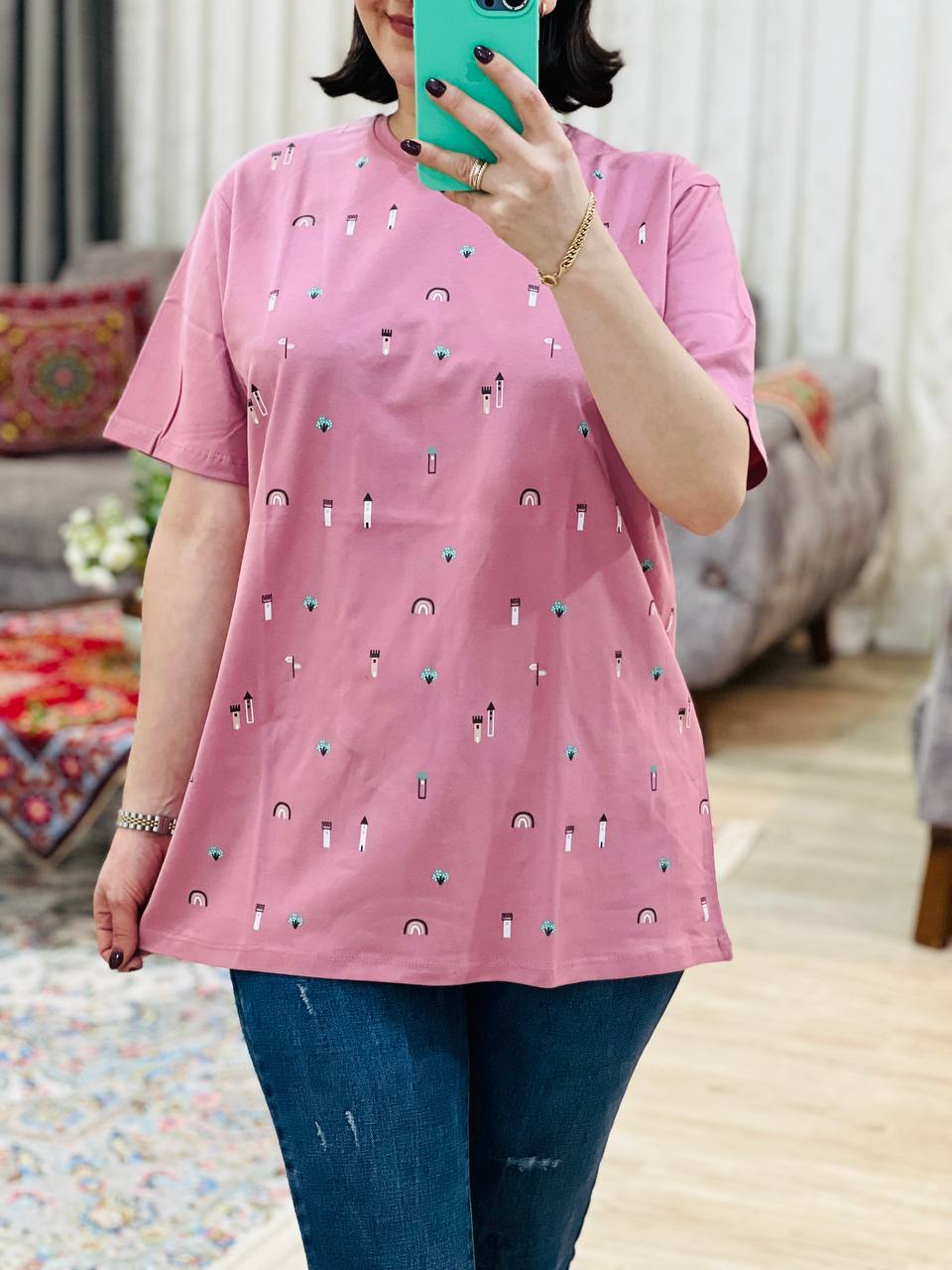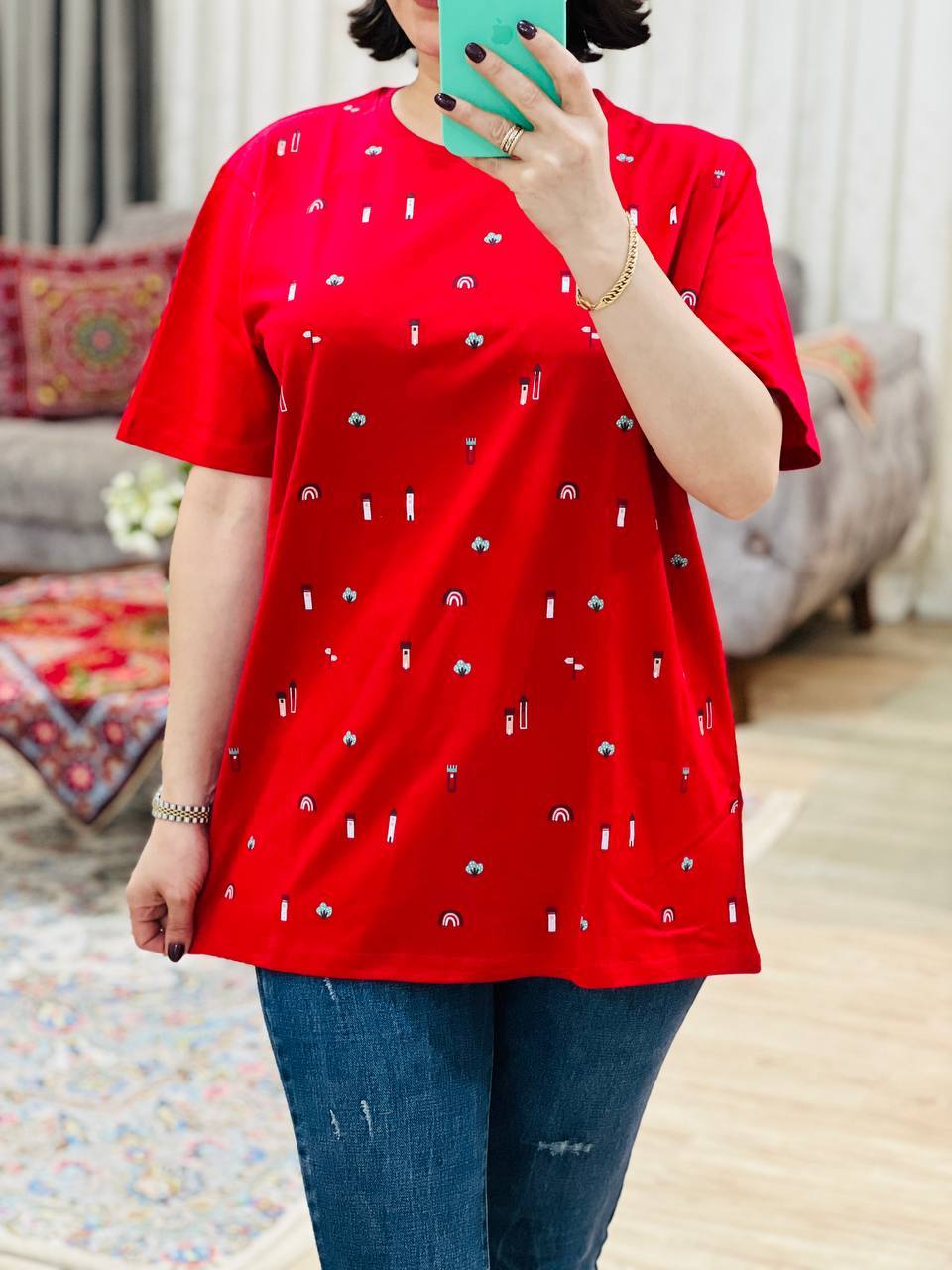 مناسب 38 تا 46 / دور سینه 110 / قد تیشرت 73 / قد آستین 24 / سرشانه 13 / دور بازو 44