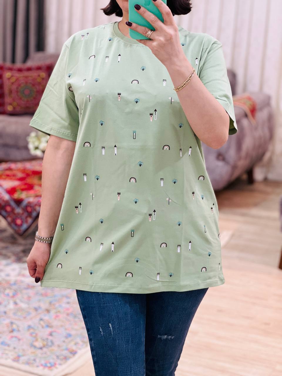 | فری سایز | مناسب 38 تا 46 / دور سینه 110 / قد تیشرت 73 / قد آستین 24 / سرشانه 13 / دور بازو 44 |