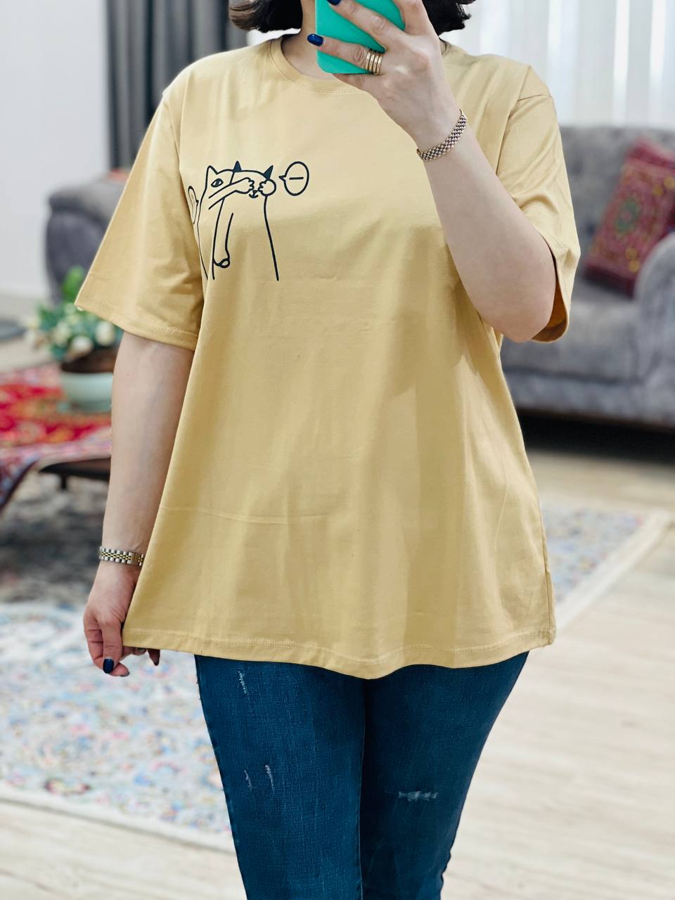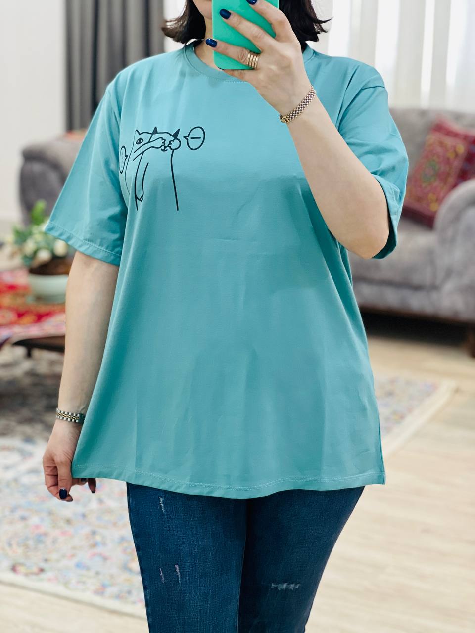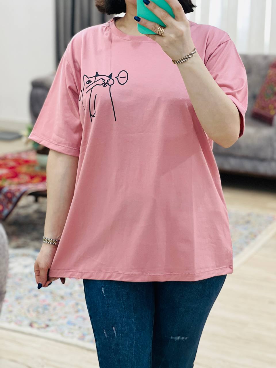 فری سایز مناسب 38 تا 46 / دور سینه 112 / قد تیشرت 68 / قد آستین 24 / سرشانه 13